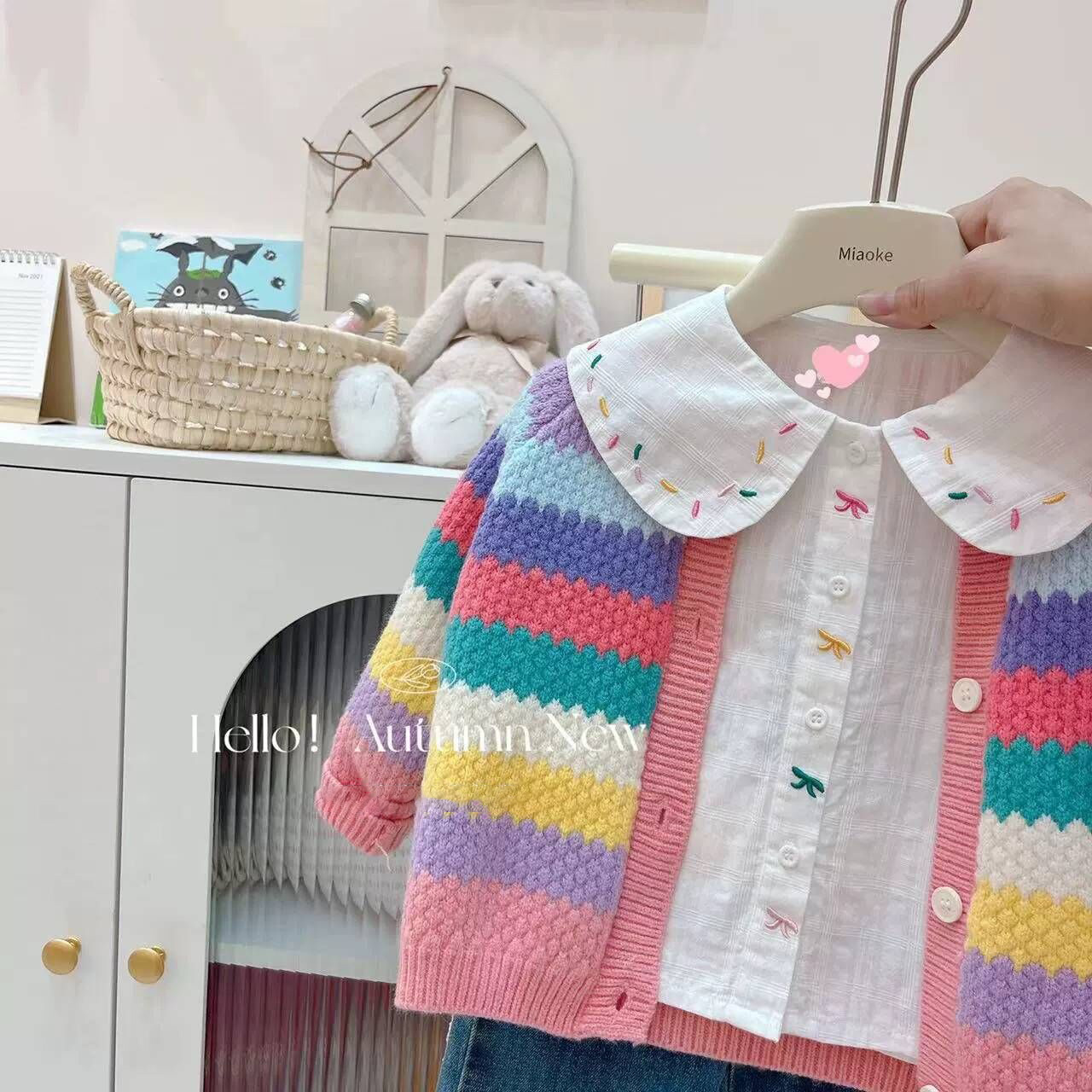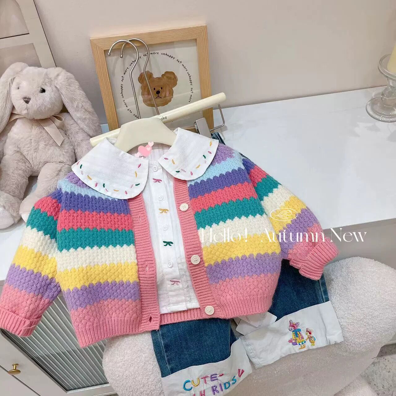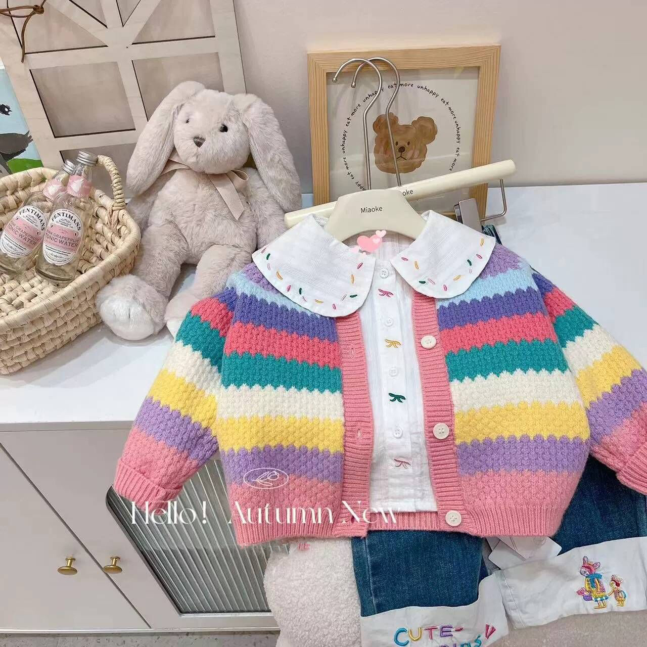 Girls sweater cardigan jacket spring and autumn new fashionable children's autumn sweater little girl top trendy