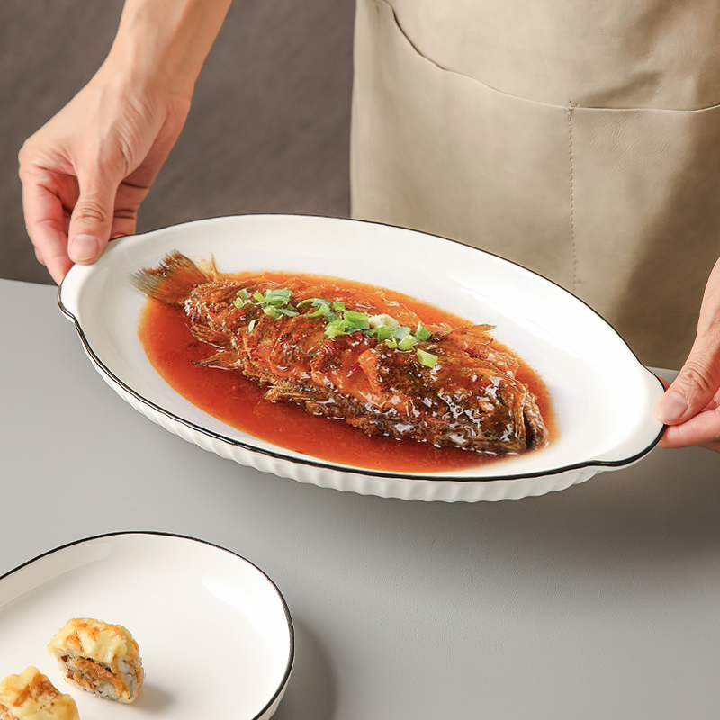 SP2271 12 inch black line elliptical binaural fish pan SP2132 black line elliptical fish pan (new) SU-24912 inch black line oval double ear fish pan 2 dress GB -