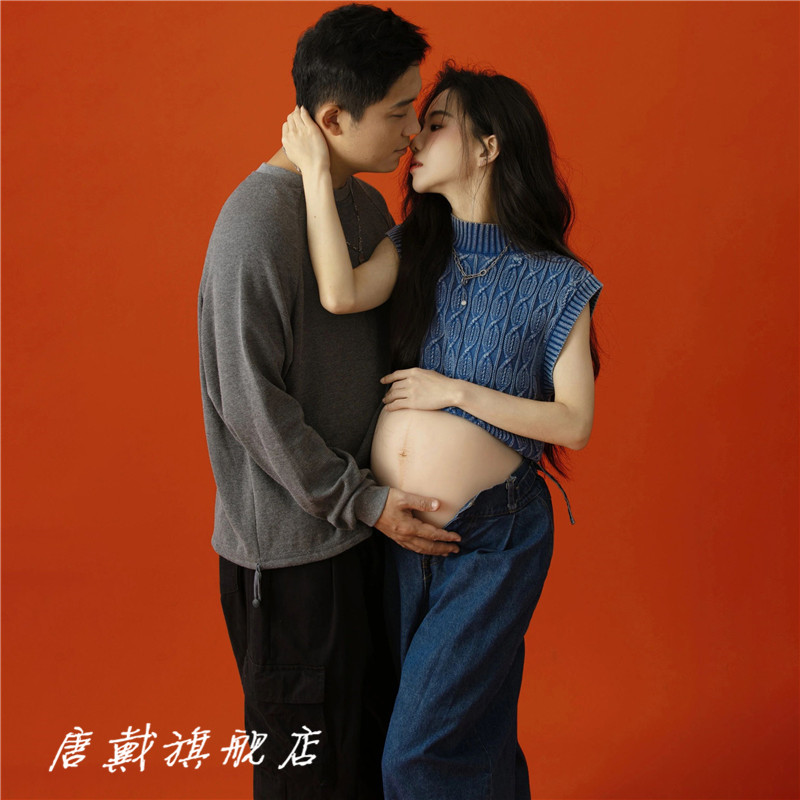 Shadow Building New Pregnant Women Photos of Costume Retro Port Wind Gestation Mothers Fashion Sexy Jeans Pregnant Women Writing True Photographic Clothing-Taobao