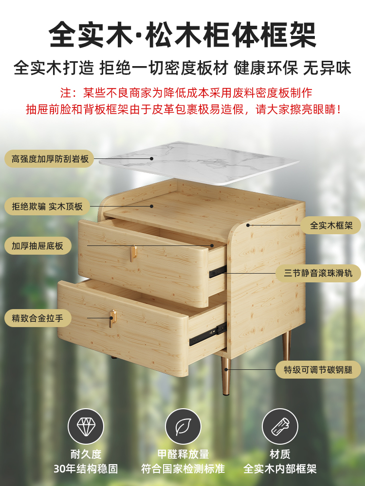 Full solid wood minimalist modern bed head cabinet 2023 new light luxury high level sensuo net red bedside cabinet bedroom rock plate cortex-Taobao
