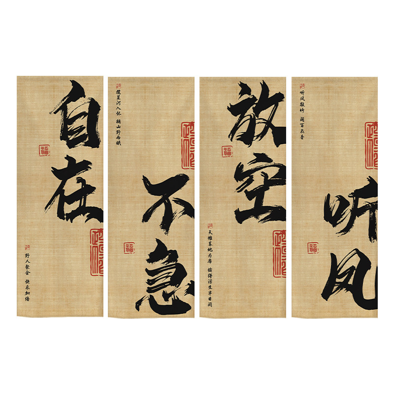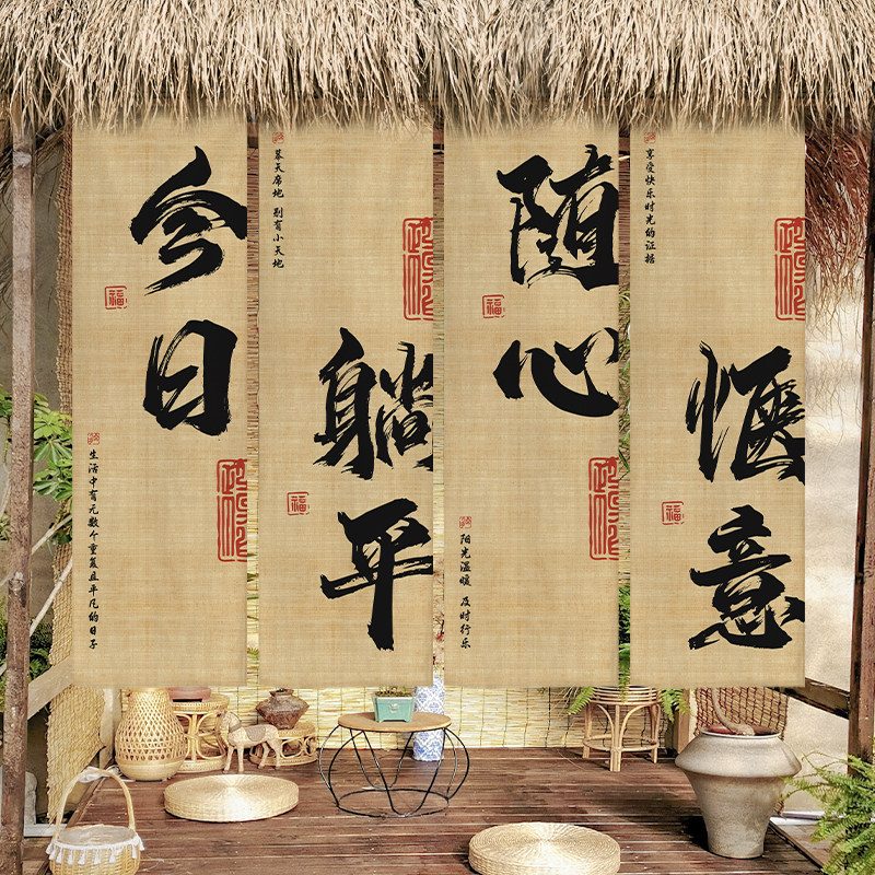 Custom calligraphy outdoor hanging cloth camping camping camping camping background cloth folk stove cooking tea atmosphere sensuo decoration cultural fabric curtain-Taobao