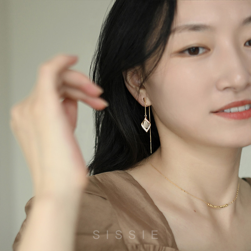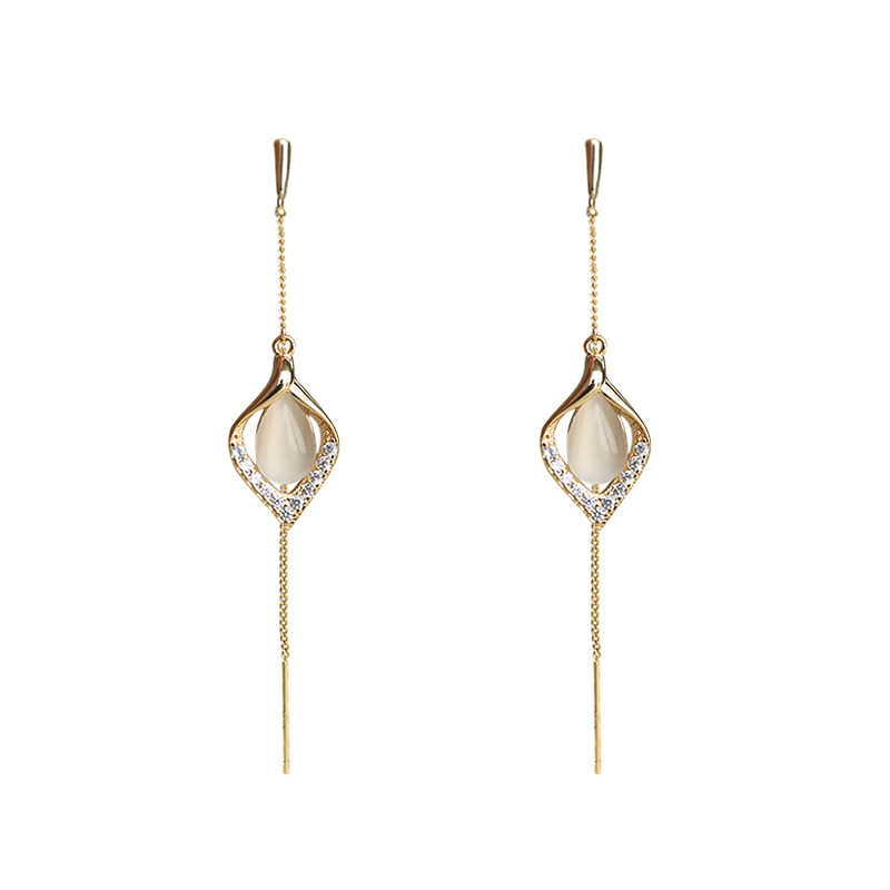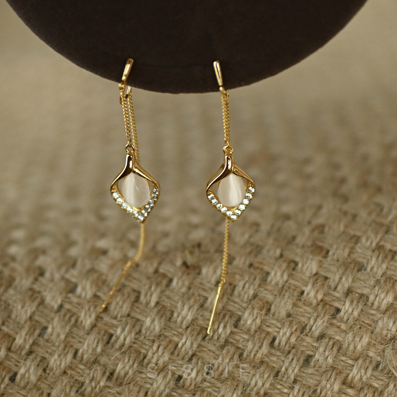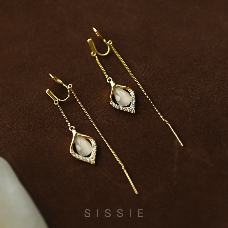 Round face Lean Cat Eye Stone Flow Suear Thread No Pain Mosquito Coil Pan Ear Clip Without Earring With Earrings Temperament Earrings-Taobao