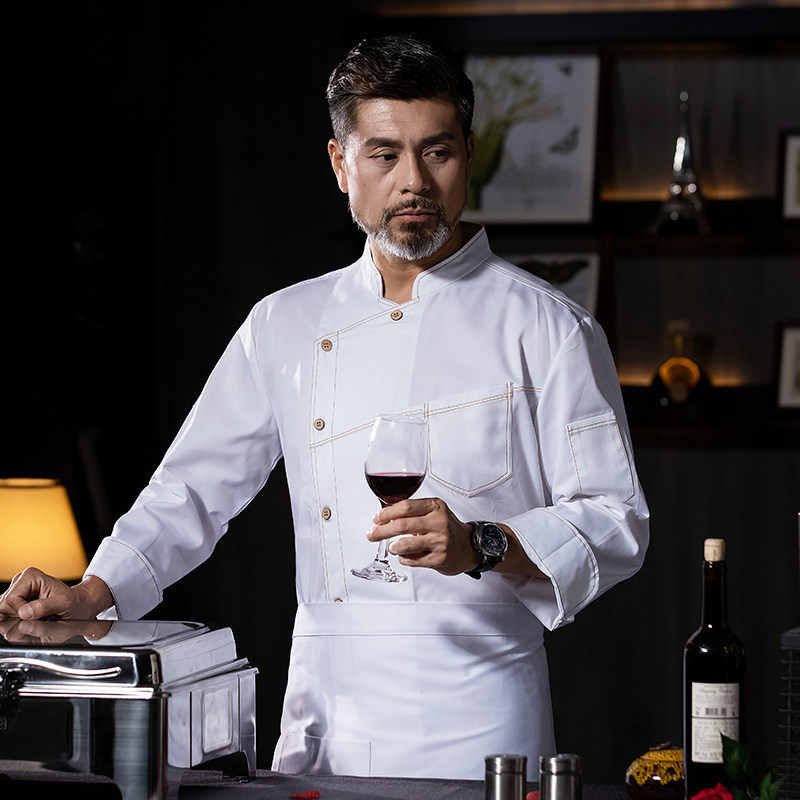 Top Chef Clothing Main Kitchen White West Restaurant Hotel Kitchenette Hotel Chefs Work Clothes Long Sleeve Suits-Taobao