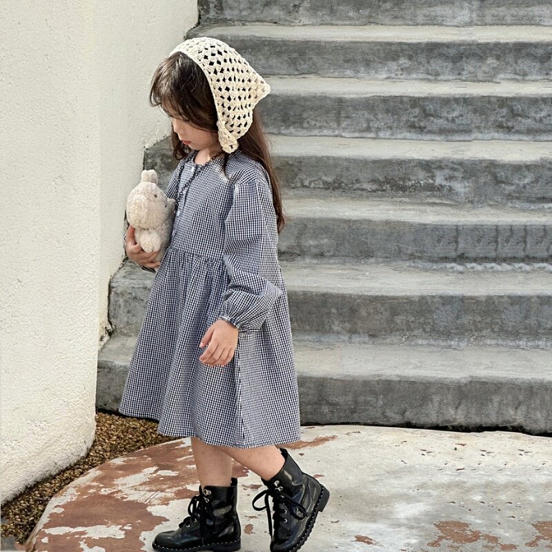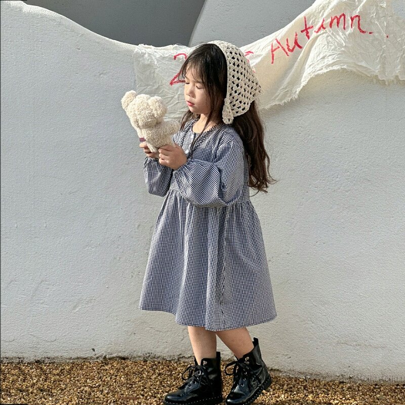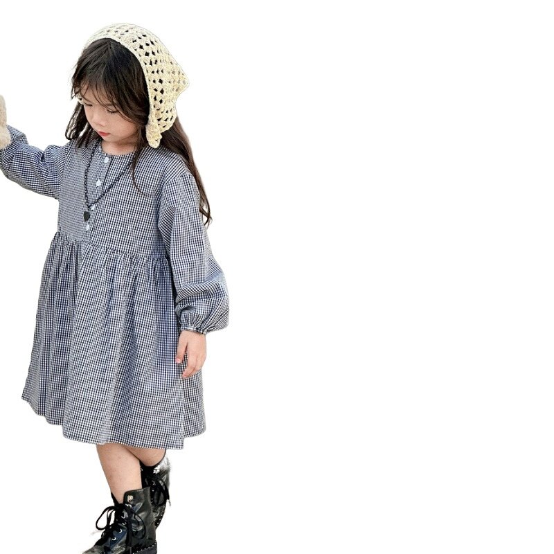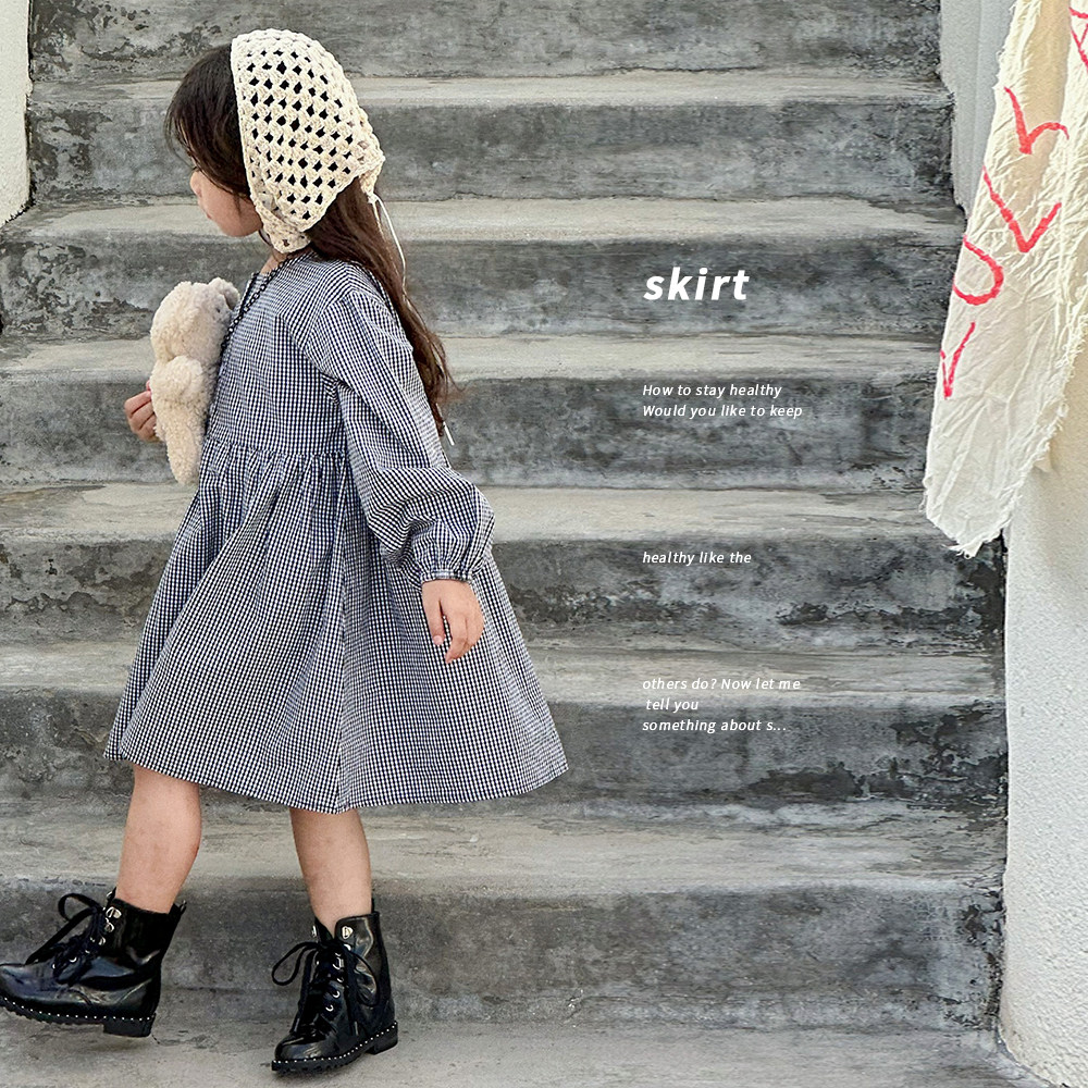 Korean Edition Children Plaid Retro Dress 2023 Fall New Pint Baby Foreign Air Skirt Children Cotton Fabric Skirt Fashion-Taobao