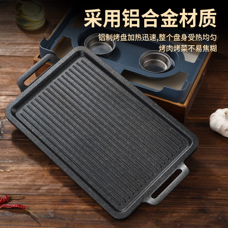 Commercial Barbecue Insulated Stove Sheep Row Insulated Pan Wood Base Rectangular Stringing Pan Charcoal Alcohol Oven not Stained Roast Pan-Taobao