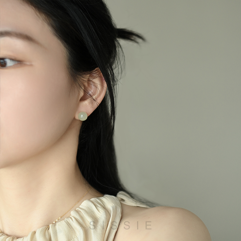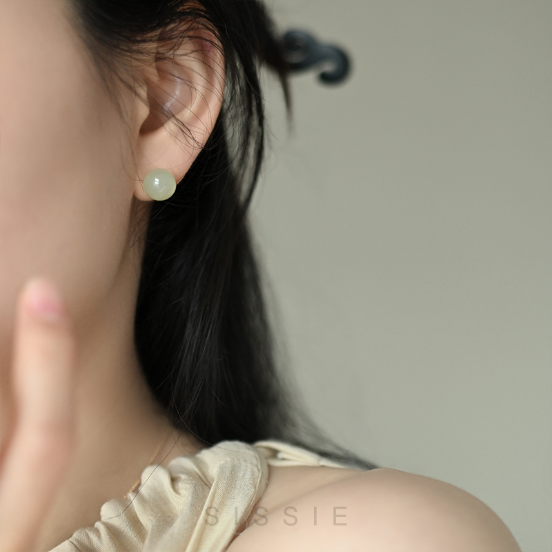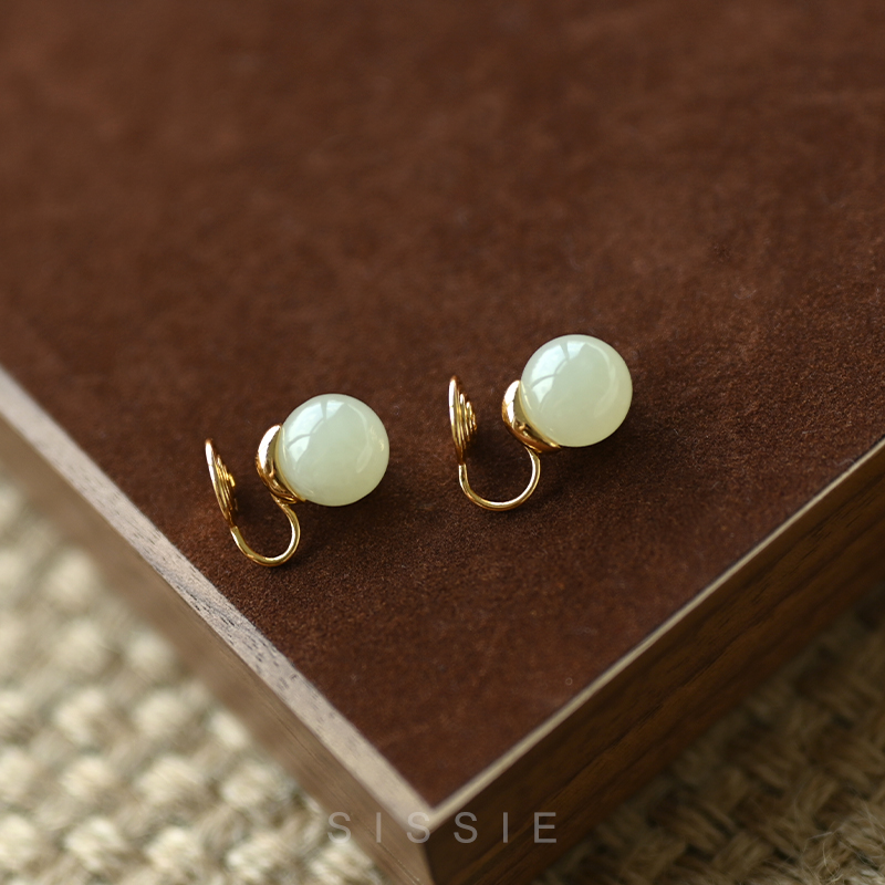 New Chinese natural and field jade ear nail light green jade mosquito incense tray ear clip without earbuds female national wind ear decoration-Taobao