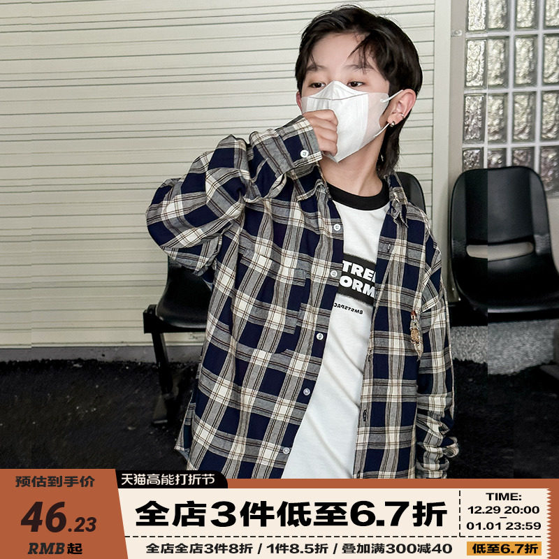 Boy shirt long sleeve plaid child blouse spring and autumn style Han Fan CUHK Tong jacket capsized autumn shirt surfacing boom-Taobao