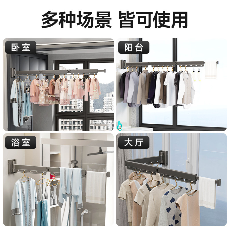 Balcony telescopic clotheshorse free of punch and folding wall-mounted invisible shrink clotheson space utilization of clotheshorse-Taobao