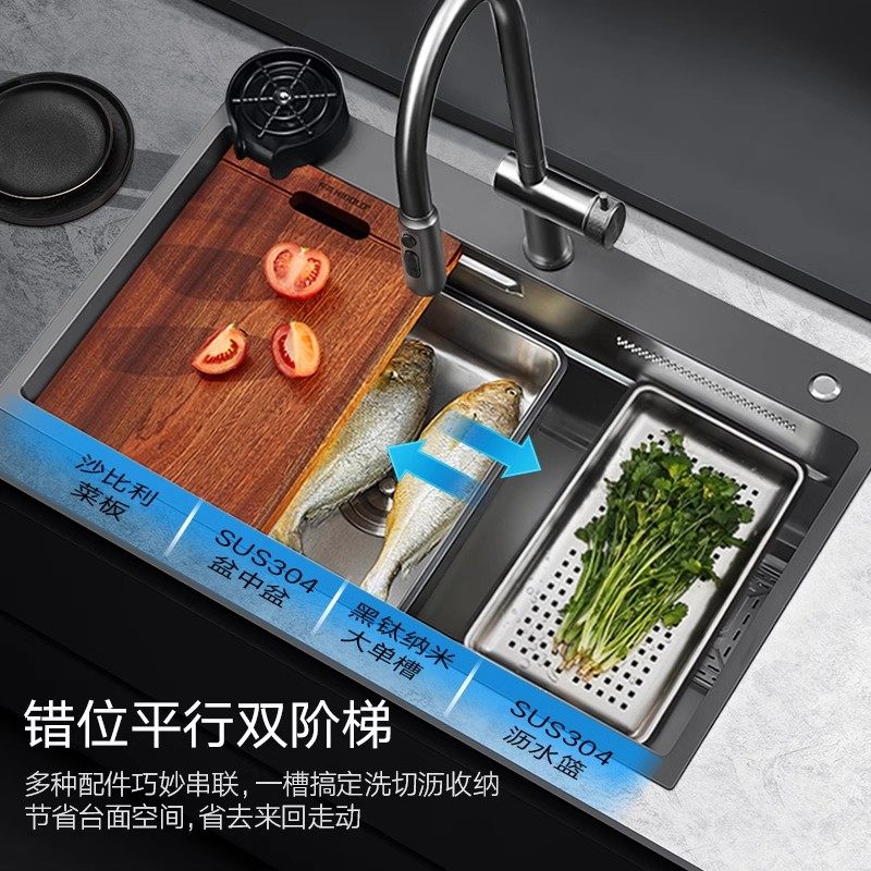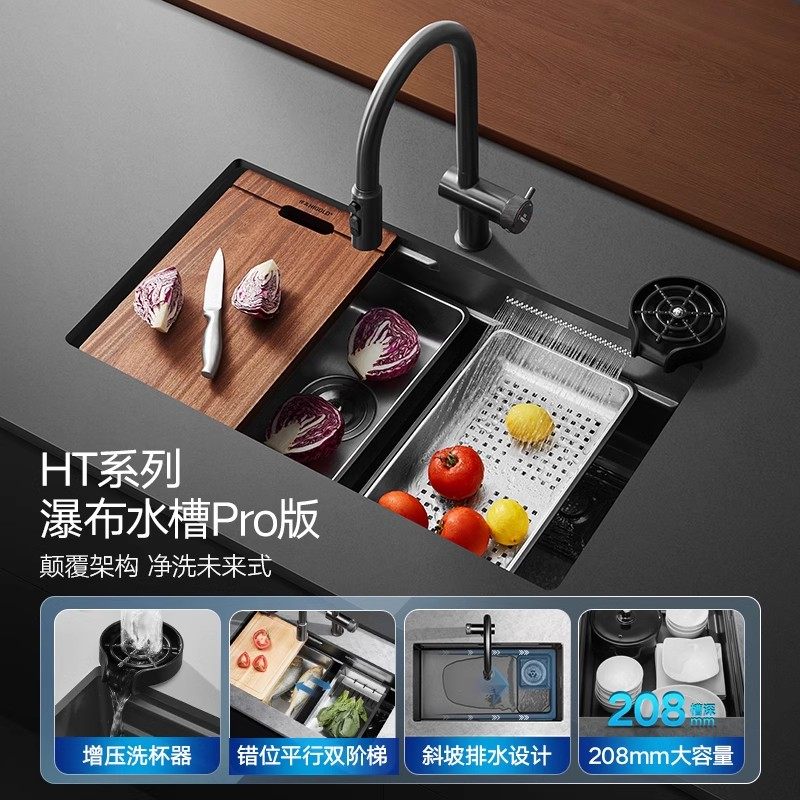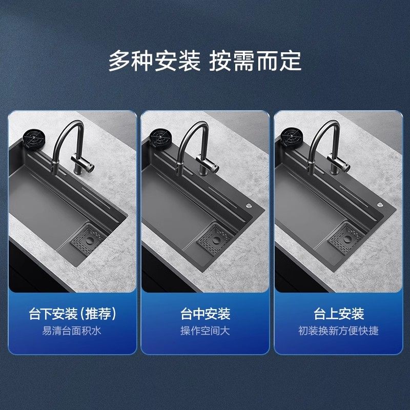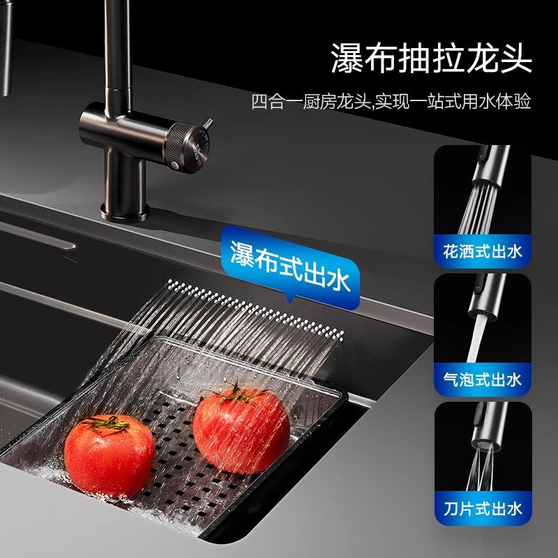Humvee Kitchen Artisanal Sink Black Titanium Nano 304 stainless steel floating rain waterfall Single trough stage Basin Suit-Taobao
