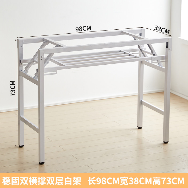 Folding table shelf Long table double table frame iron frame table legs single layer table legs simple table white bracket-Taobao