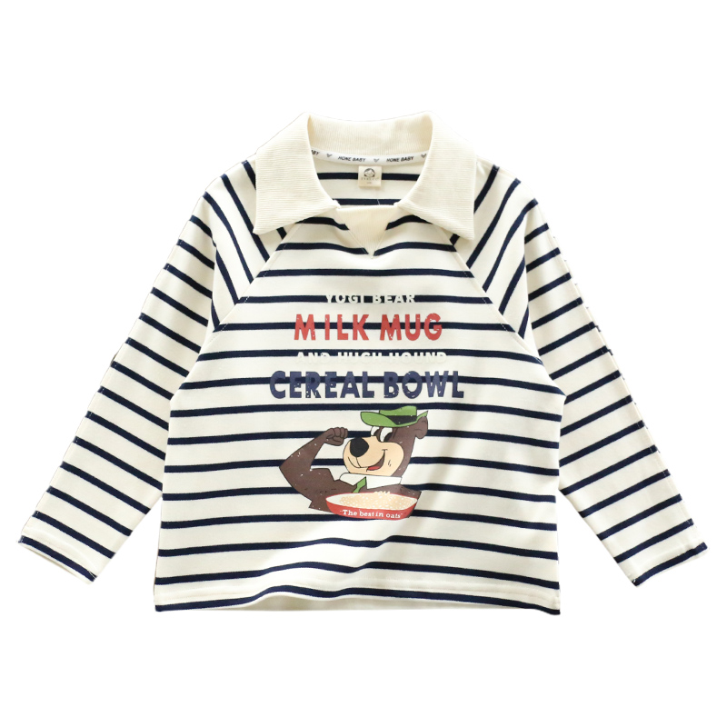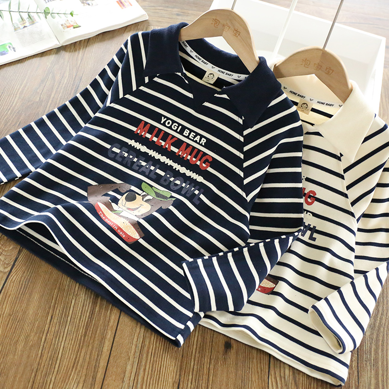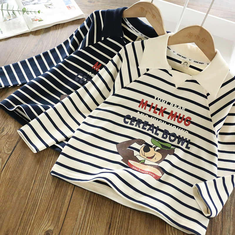 23 autumn new male and female child polo shirt sweatshirt spring autumn children casual loose 100 lapped foreign air striped headcoat blouses-Taobao