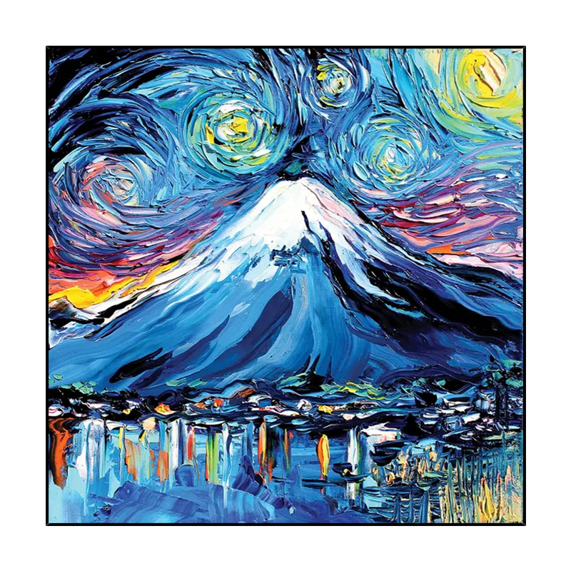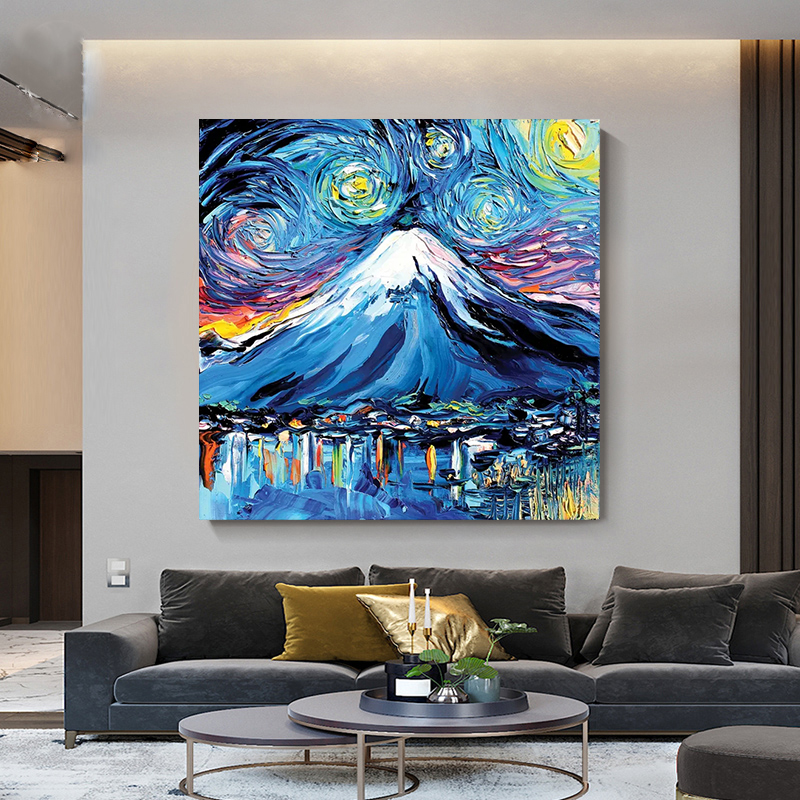 Hand painted oil painting Starsky Fuji Mt. Fuji Mt. Square Living Room Background Wall Decoration Painting Bedroom Bookroom Fresco-Taobao
