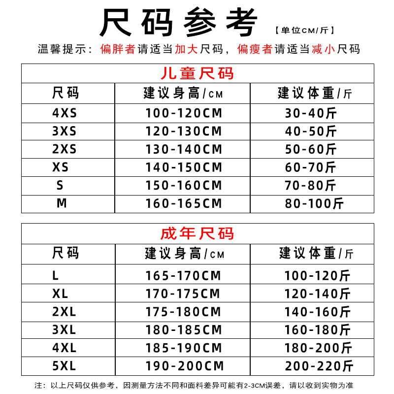Child 4SX (100-120CM weight 30-40 kilograms) child 3SX (120-130CM weight 40-50 catty) child 2SX (13