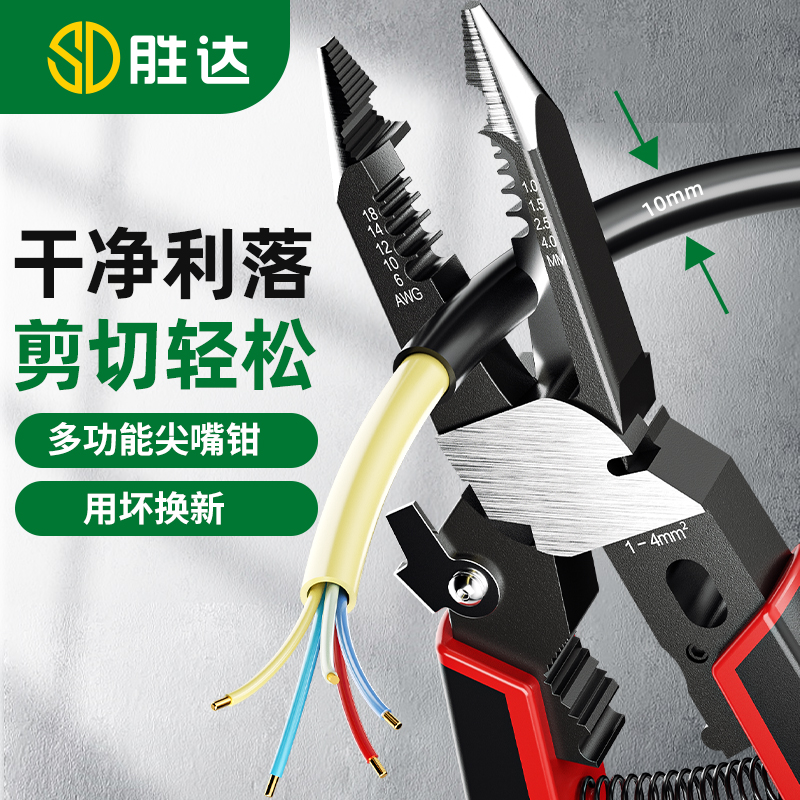 Multifunction Sharp Mouth Pliers 9 Hop 1 Industrial grade Peeling Wire Pliers Electrician Wan Use Pliers Electrician Special Exfoliating Pliers S-Taobao
