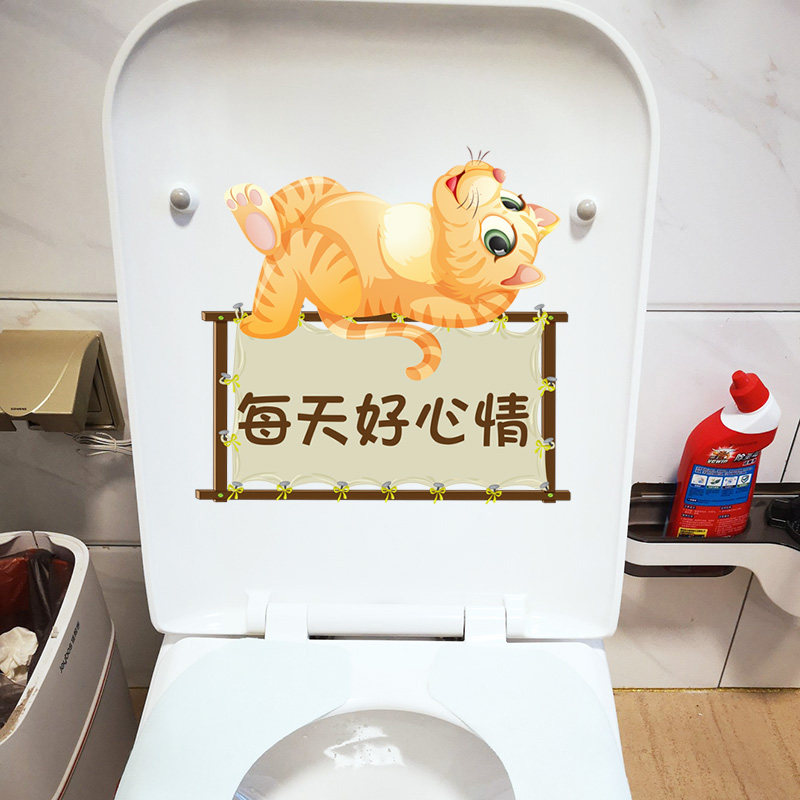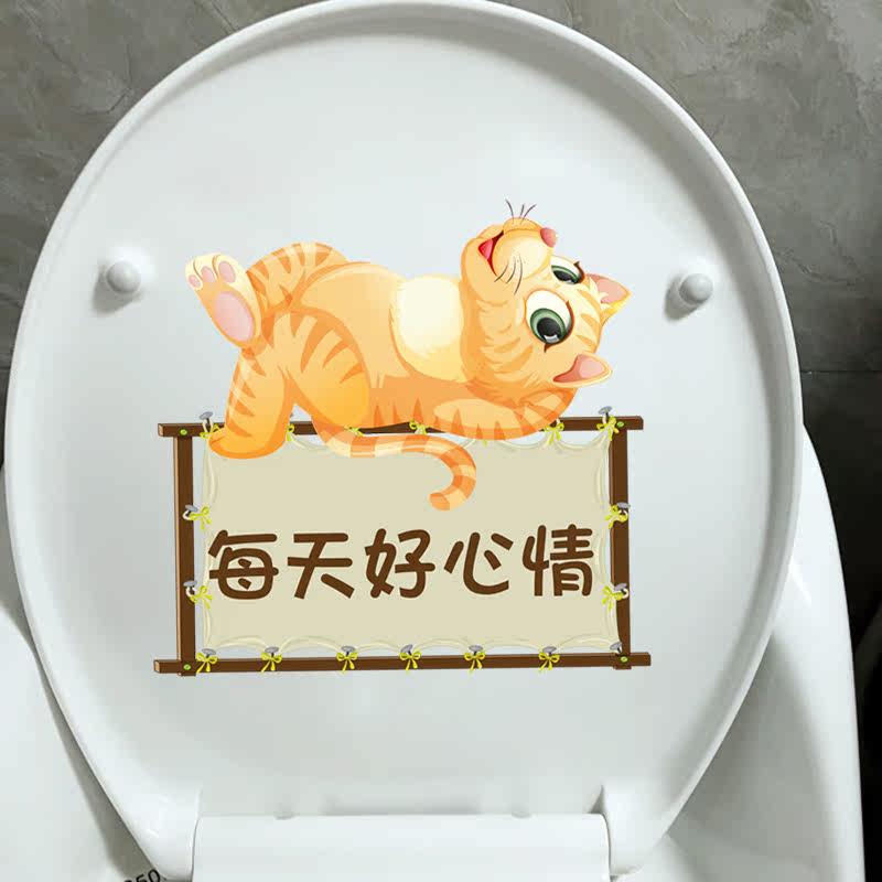 The tour level is good every day with fun kittens home waterproof toilet sticker creative toilet toilet toilet sticker-Taobao