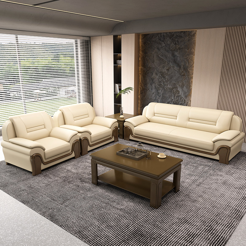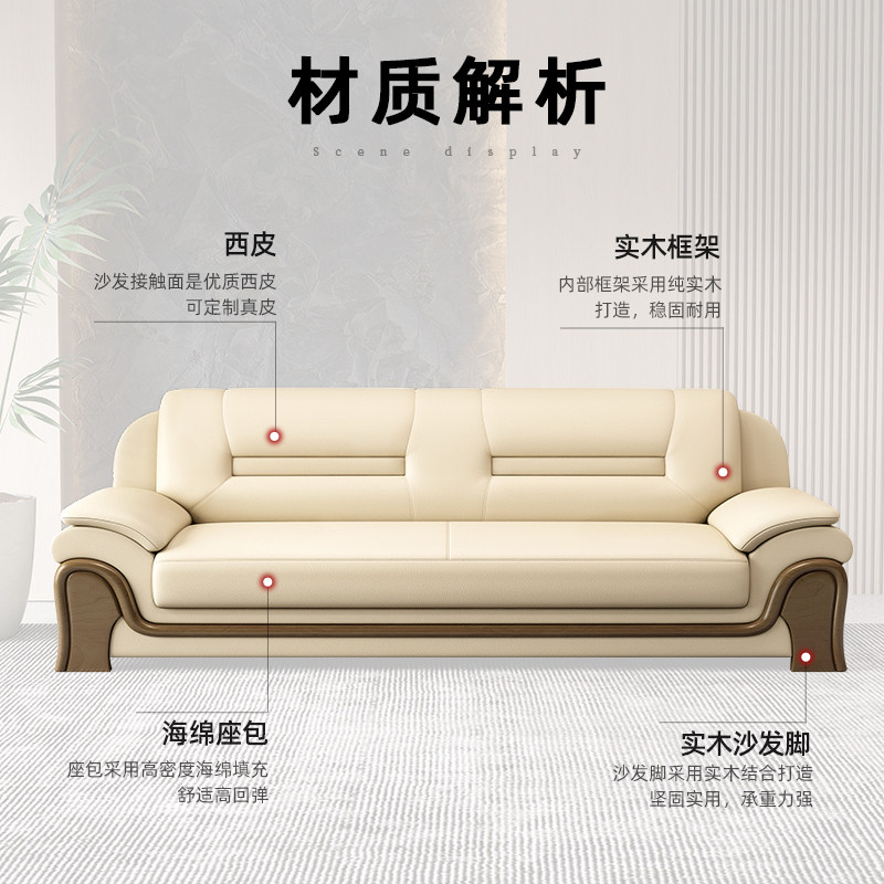 Office Sofa Business Brief Modern Living Room Hall Hotel VIP Reception Room Genuine Leather Trio with tea table combinations-Taobao