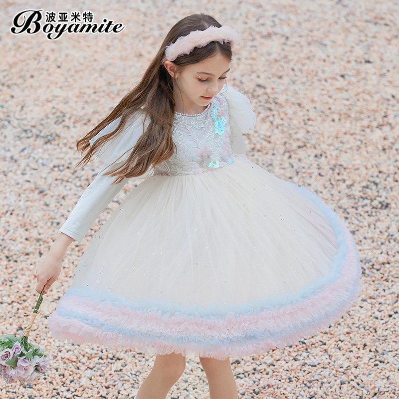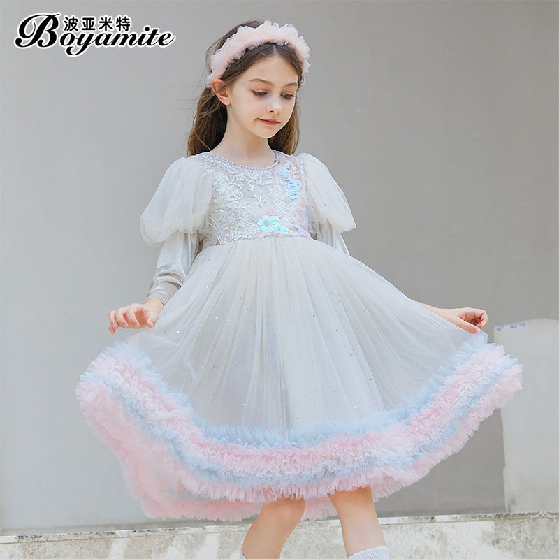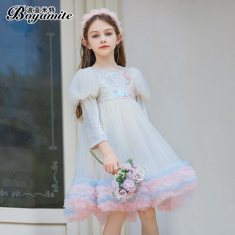 Girl Bubble Cuff Princess Dress Autumn Dress 2023 New Children Foreign Air Long Sleeve Dress Little Girl Tutu Skirt-Taobao