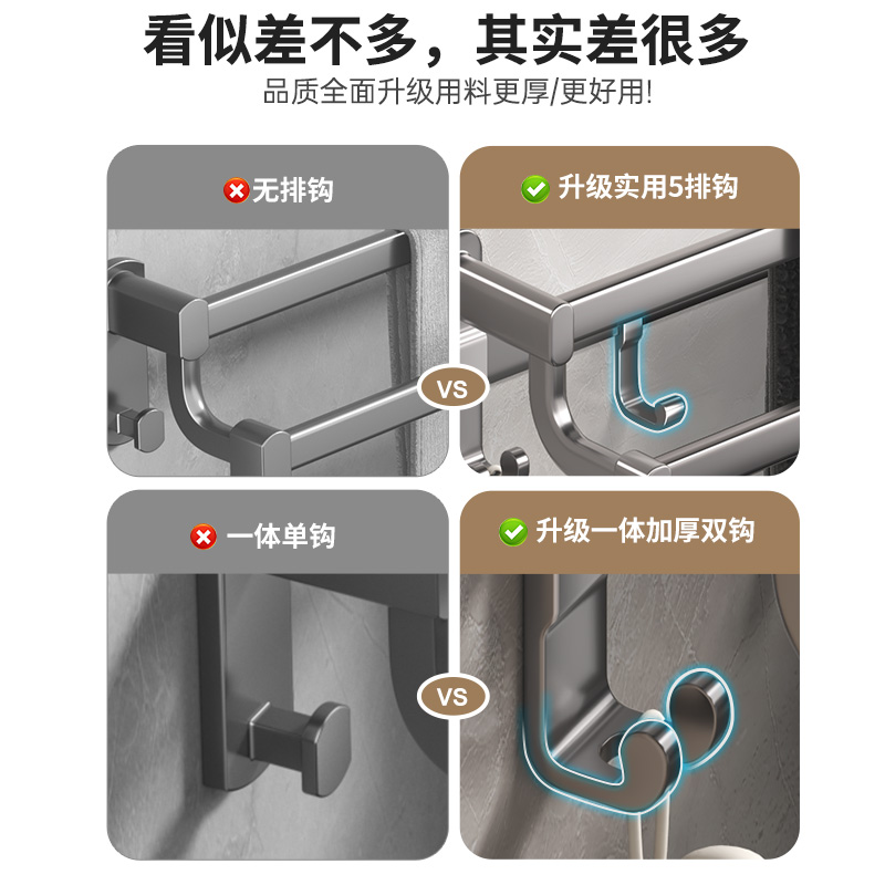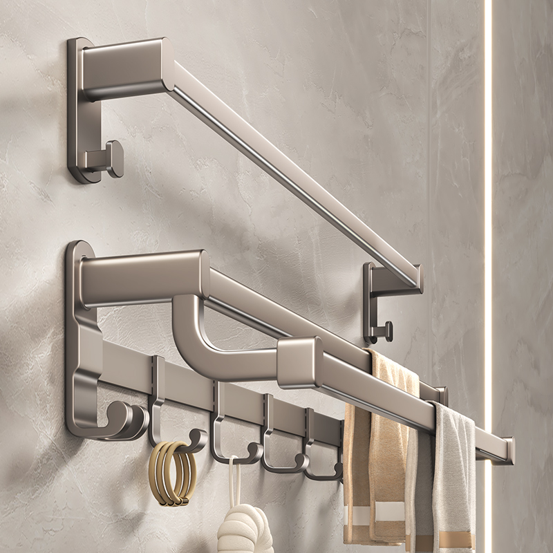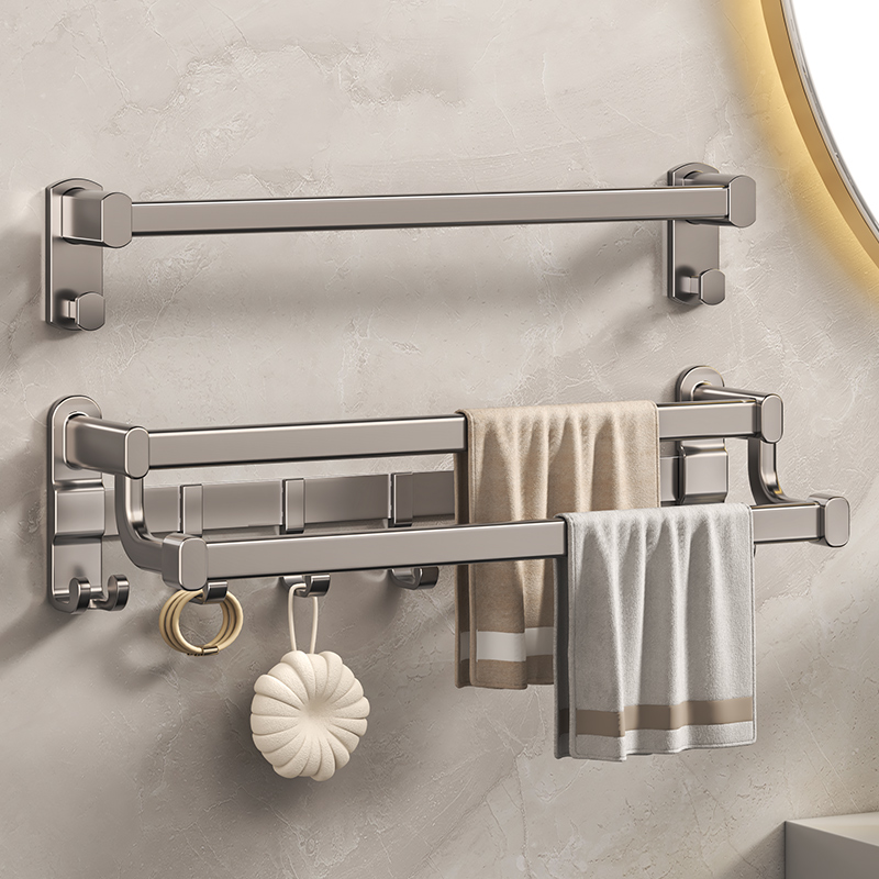 Bathroom towel rack gun grey single double pole free of punching toilet hanging towel rod space aluminum light lavish bath towel rack-Taobao