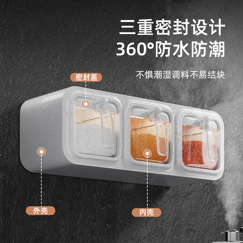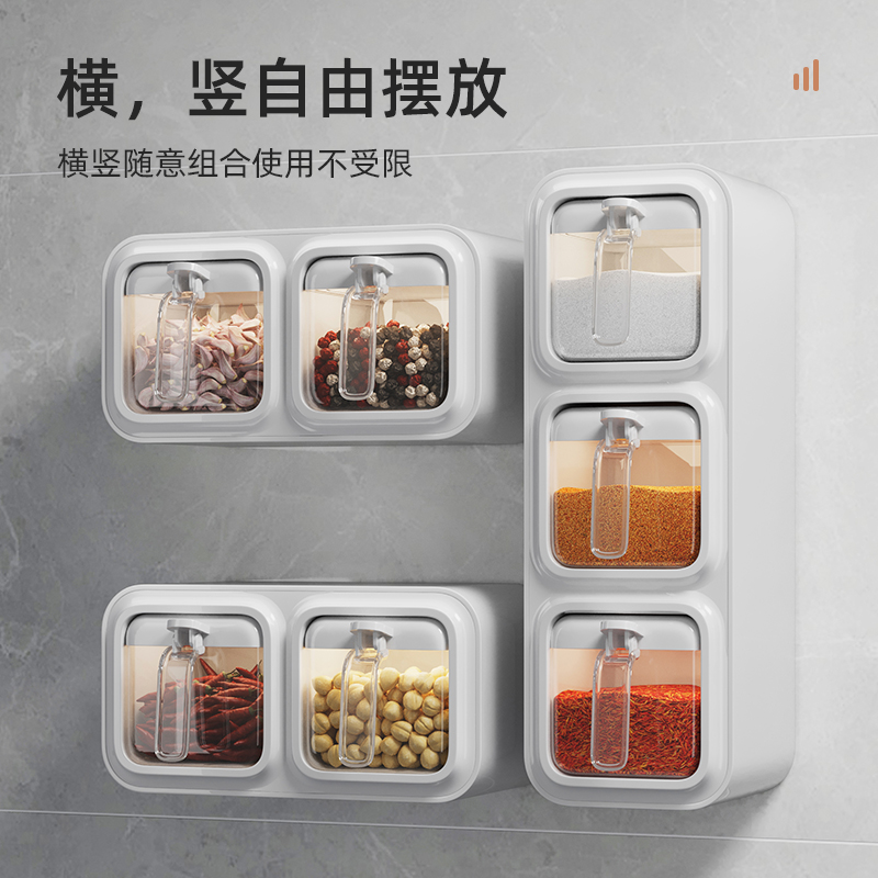 Uqin Seasoning Box Home Kitchen Wall-mounted Seasoning Jar Salt MSG Intake Box Zo Spice Seal Combined Suit-Taobao