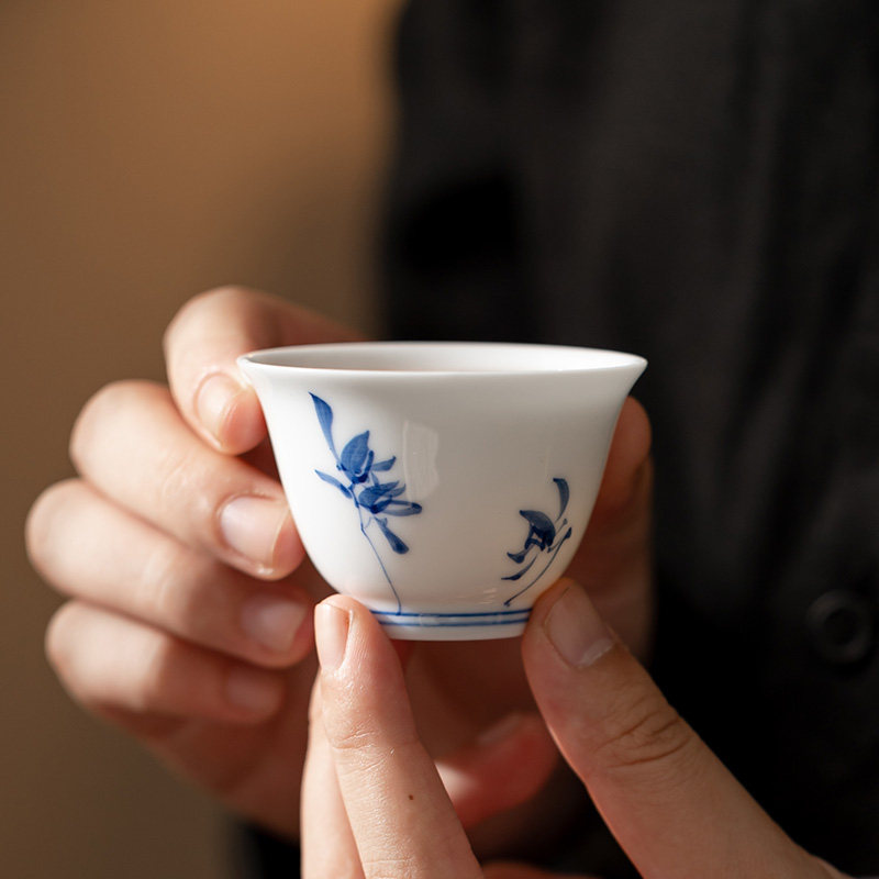 Pure hand painted butterfly Lanhua Heart Cup Master Cup home Ceramic Gongfu Tea Tea Drinking Cup Single Cup Tea-Taobao