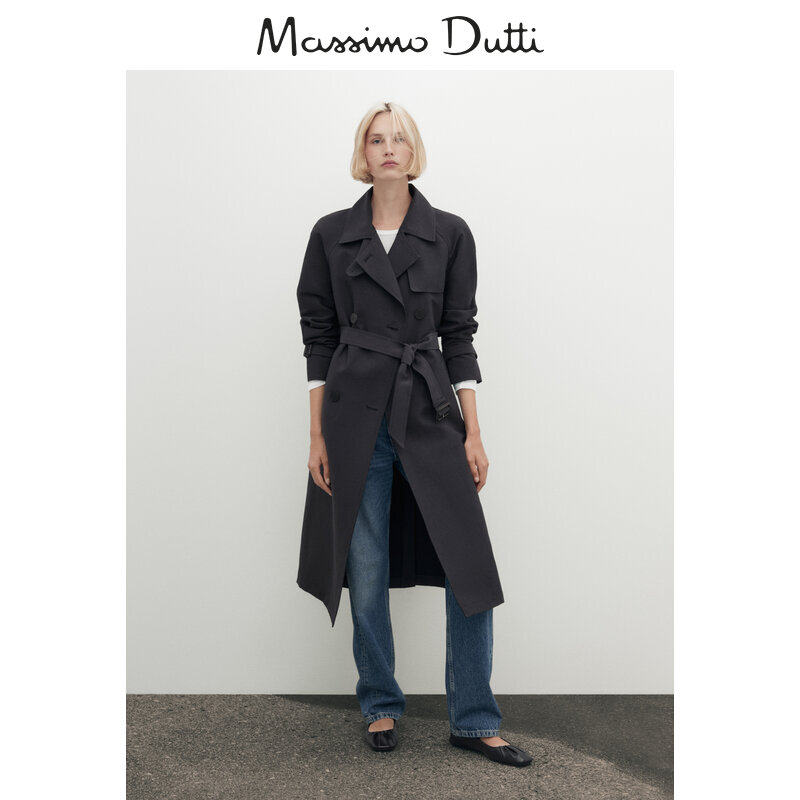 Discount season Massimo Dutti2023 women's clothing Leisure Inn Wind minimalist in classic style Belt Trim with long windcoat 06700610401-Taobao