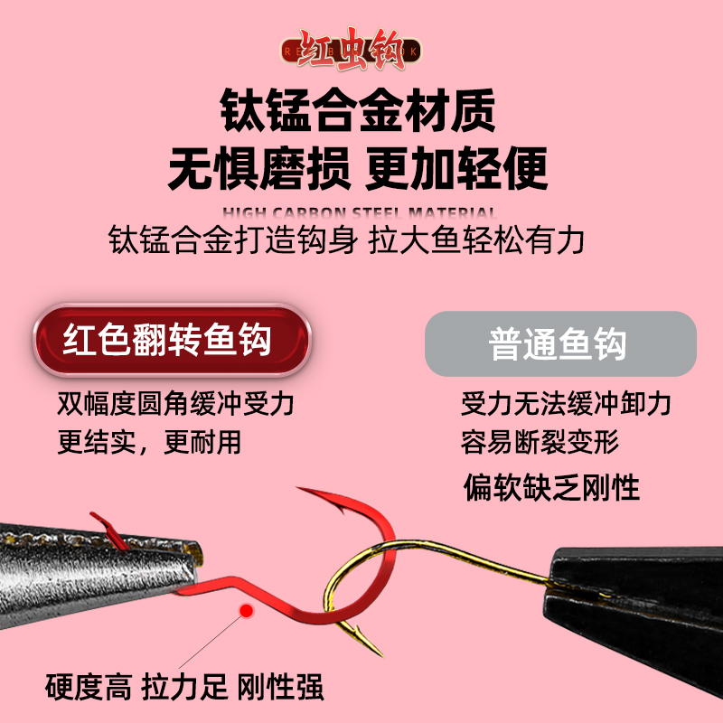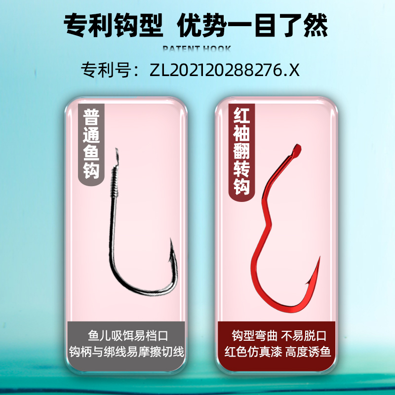 Little Fairy's new red sleeves Auto-flipped fish hooks tied with fine sub-wire double-hook anti-redworm for not fuss fishing hook-Taobao