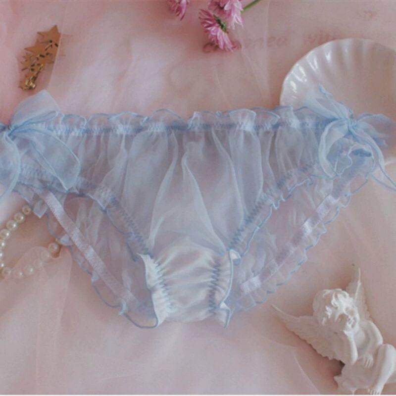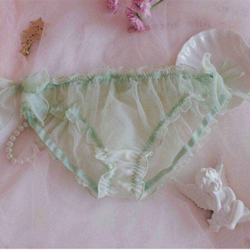 The Japan-ROK popular new men and women are the same sex-style thin and transparent snow spinning butterfly knot lace seductive low waist triangular pants-Taobao