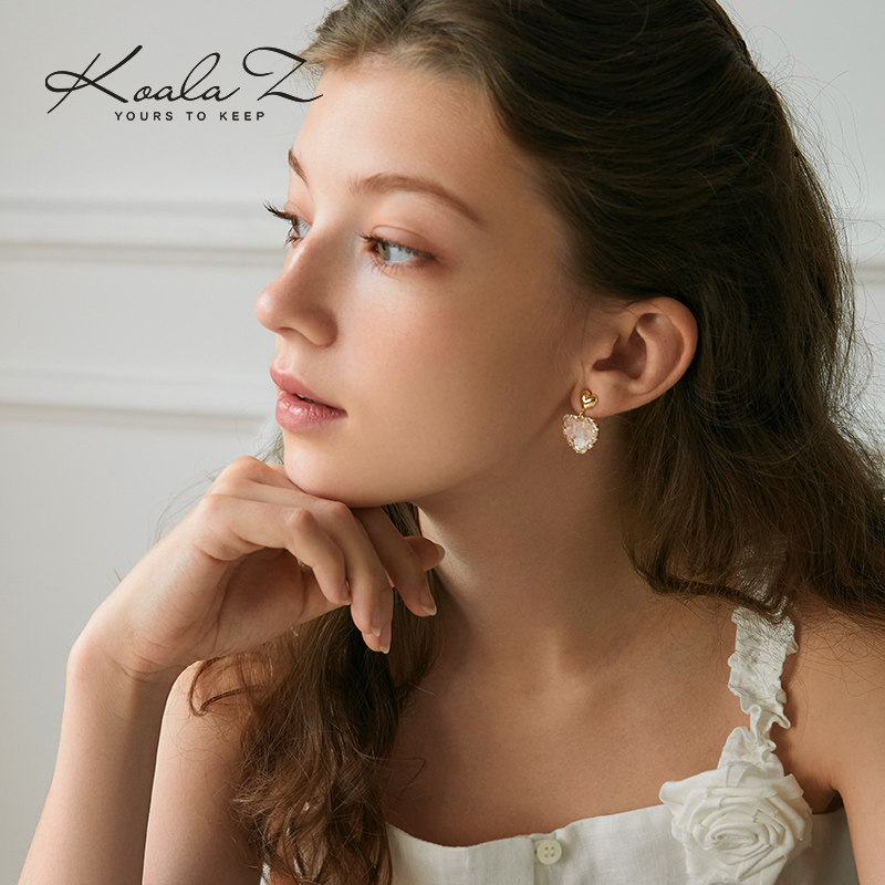 Fairy Temperament Fresh And Sweet Girl Sensation Romantic Pink Gradient Loving Zircons Earrings Without Ear Clip-Taobao