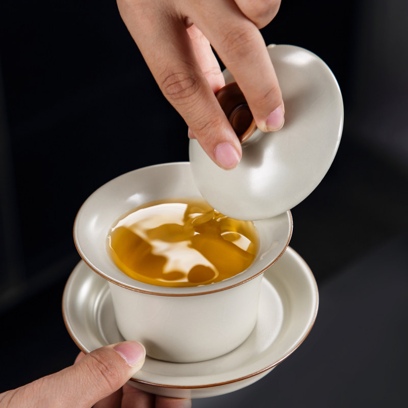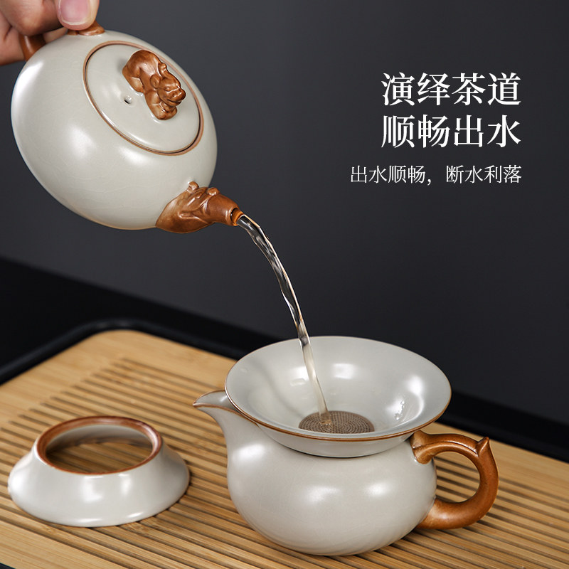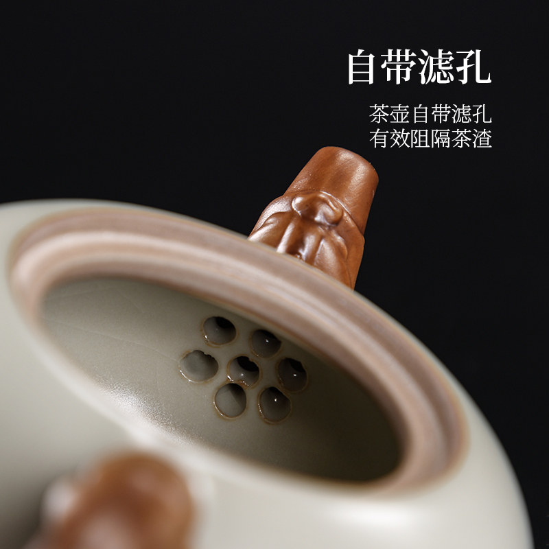 2023 New Ru Kiln Kung Fu Tea Set Suit Home Chinese Style Light Luxury High-end Cover Bowl Tea Cup Bubble Teapot Teapot-Taobao