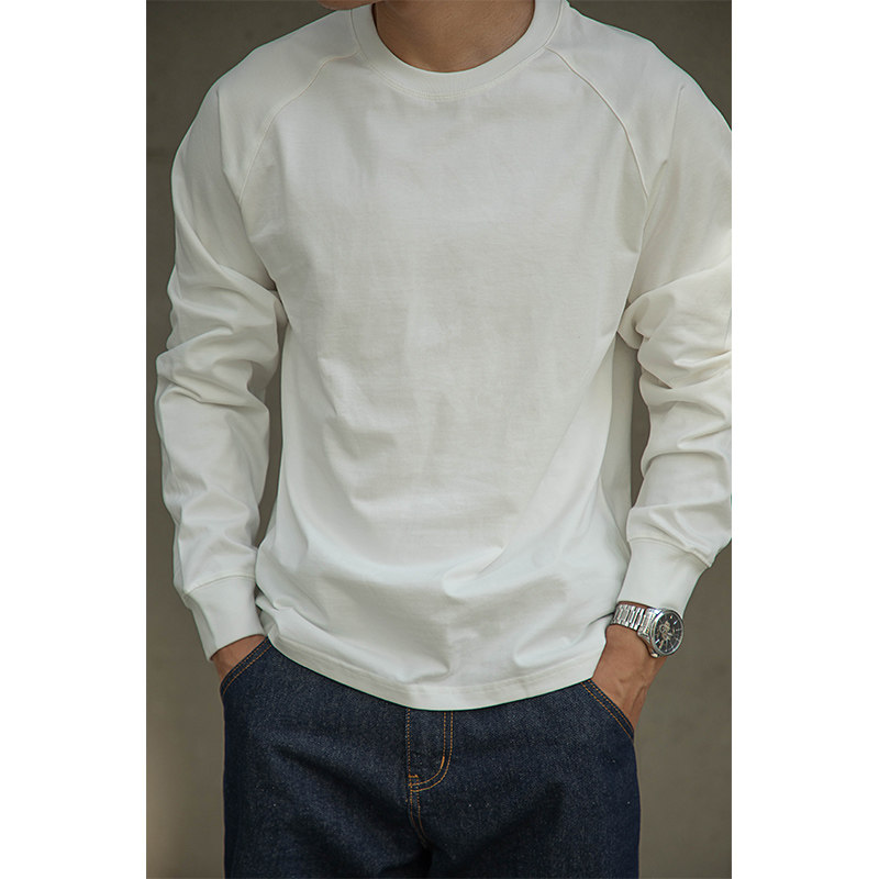 Well-Edged American Retro-Pound Pure Cotton Inserted Shoulder Long Sleeve T-shirt Ami's small neckline for a bottom-shirt autumn man-Taobao