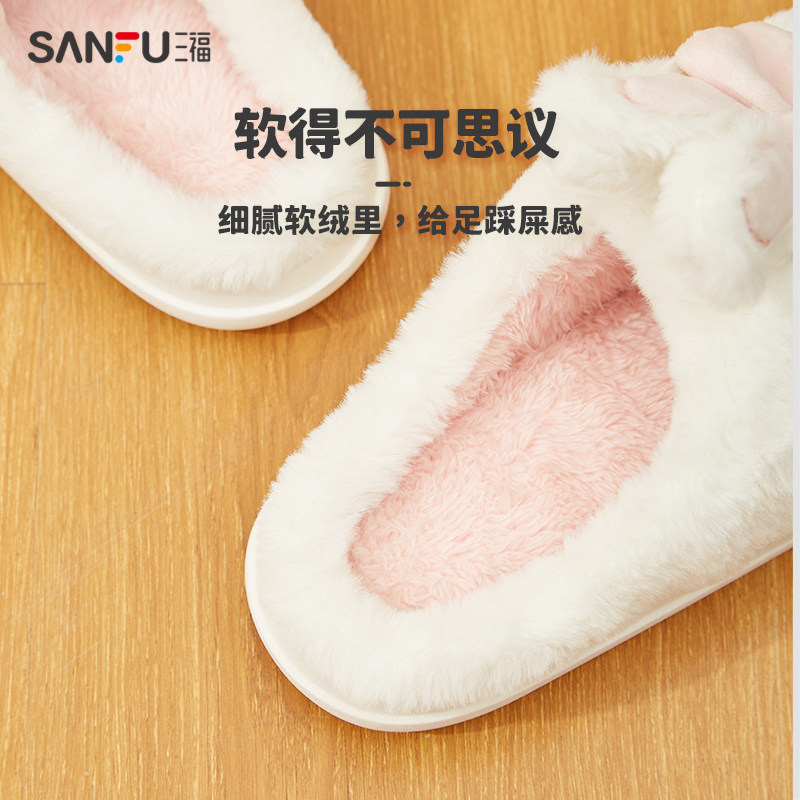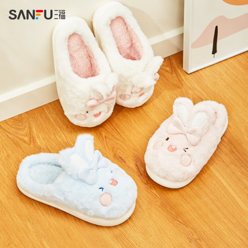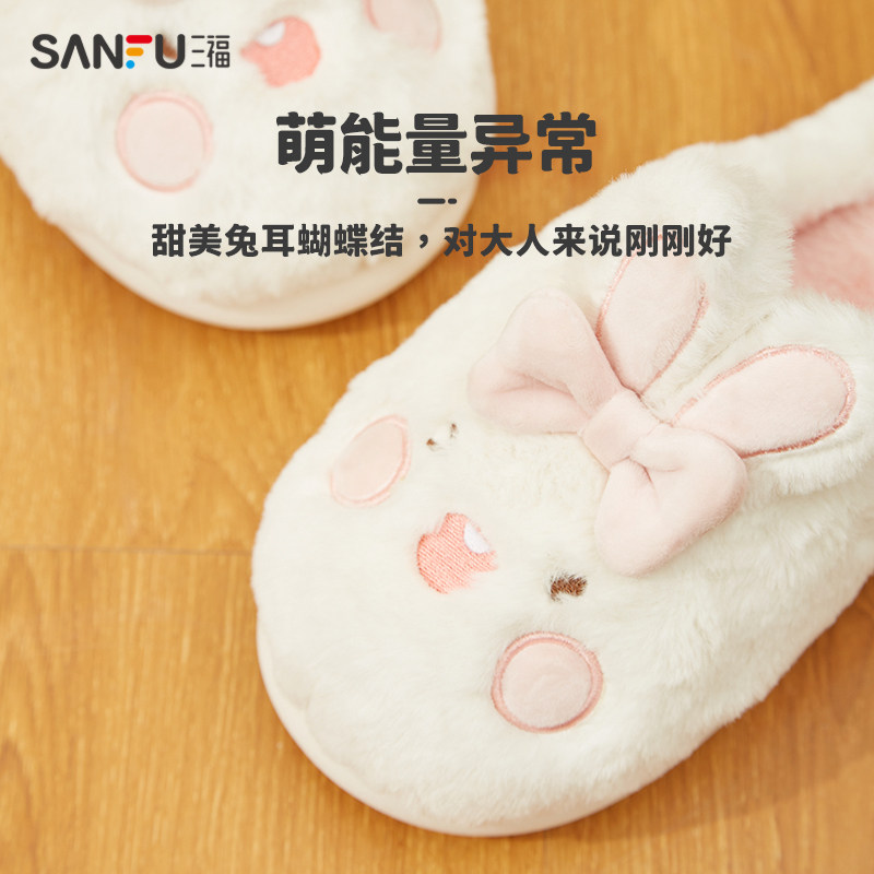 Sanfu Cotton Slippers Female Butterfly Knot Rabbit Ears Half Bag Tug Fashion Cute Interior Home Slippers 2023 New-Taobao