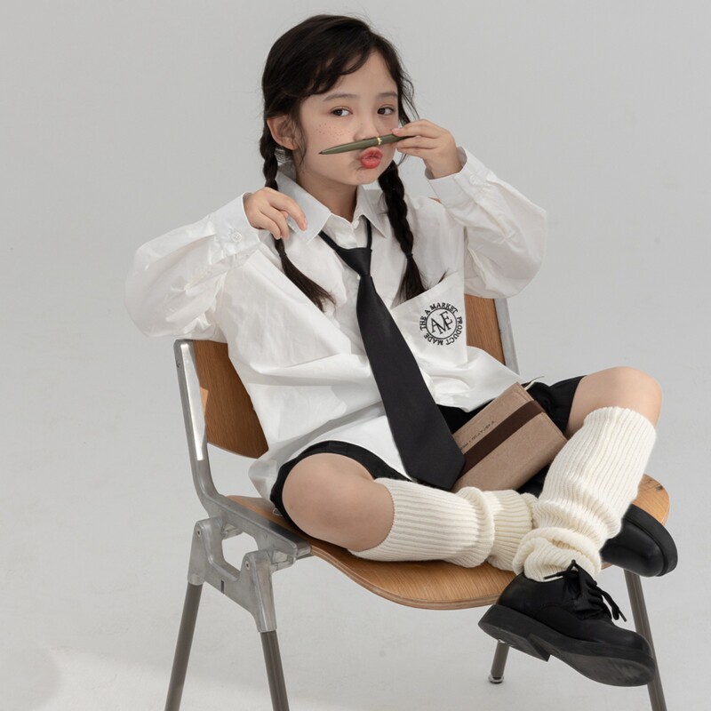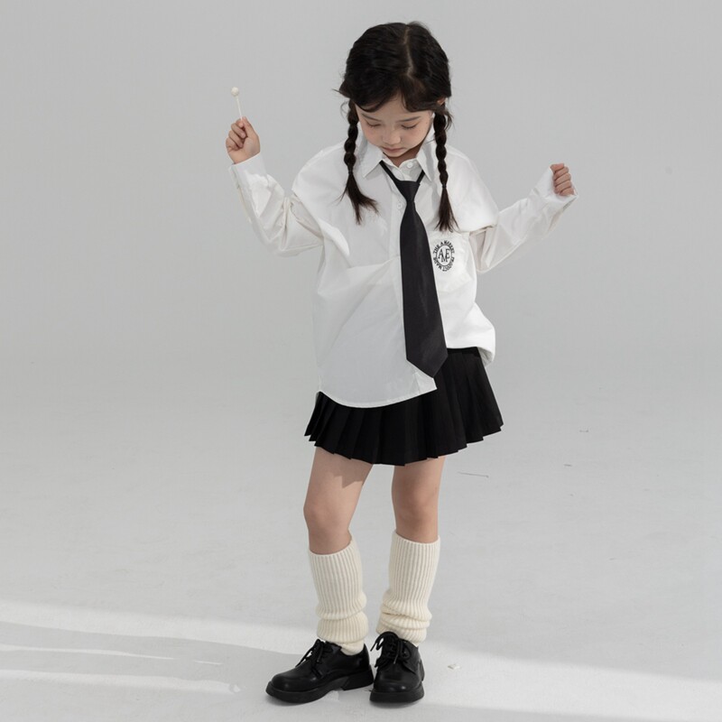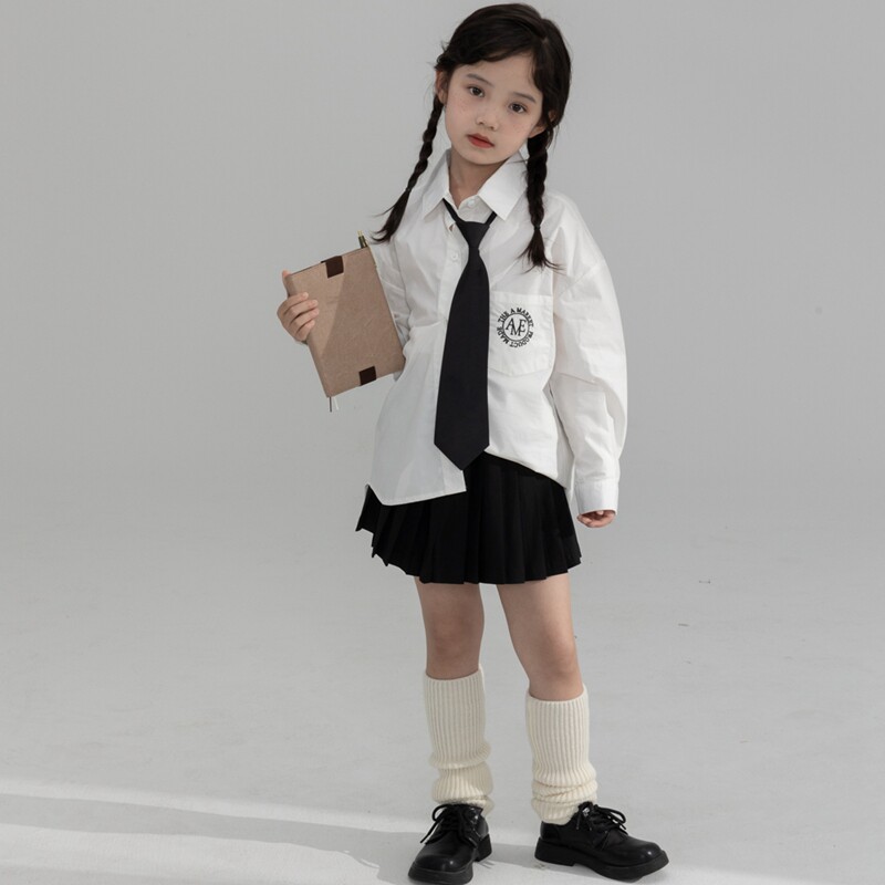 2023 autumn clothing Korean children embroidery loose version white shirt girl campus wind handsome gas tie long sleeve shirt-Taobao