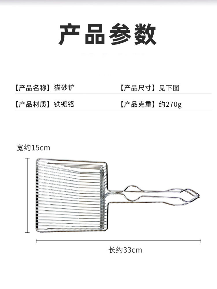 Metal shovel stainless steel hook type thickened cat litter shovel hanging cat feces shovel large hole fast sand leakage shovel