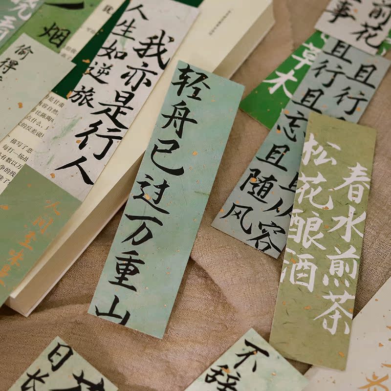 Pen Ink Dan Green Guest Boxed Bookmarking Motivao Feng Wen Case Blessings Written Hands Account Material Card Message Gift-Taobao