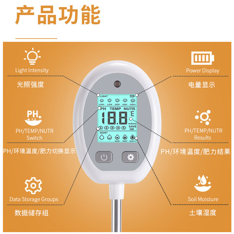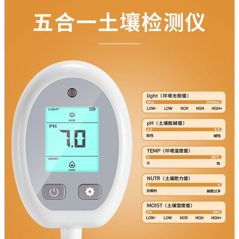 High precision 5 Hop 1 soil detector white (humidity fertility value light value PH value temperature) high precision 5 contracts 1 soil detector black (humidity fertility force value light value PH