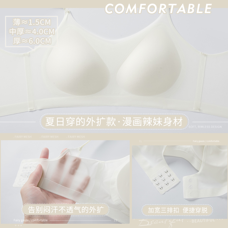 External expansion No-scratches underwear female small breasts with large display waist and fine summer cool and no steel ring anti-sagging bra suit-Taobao