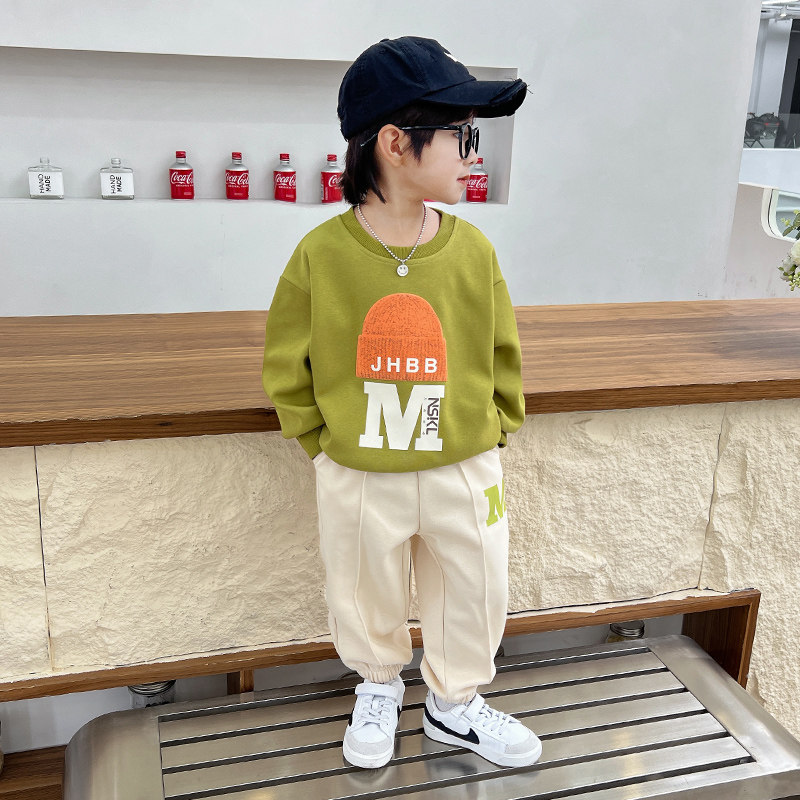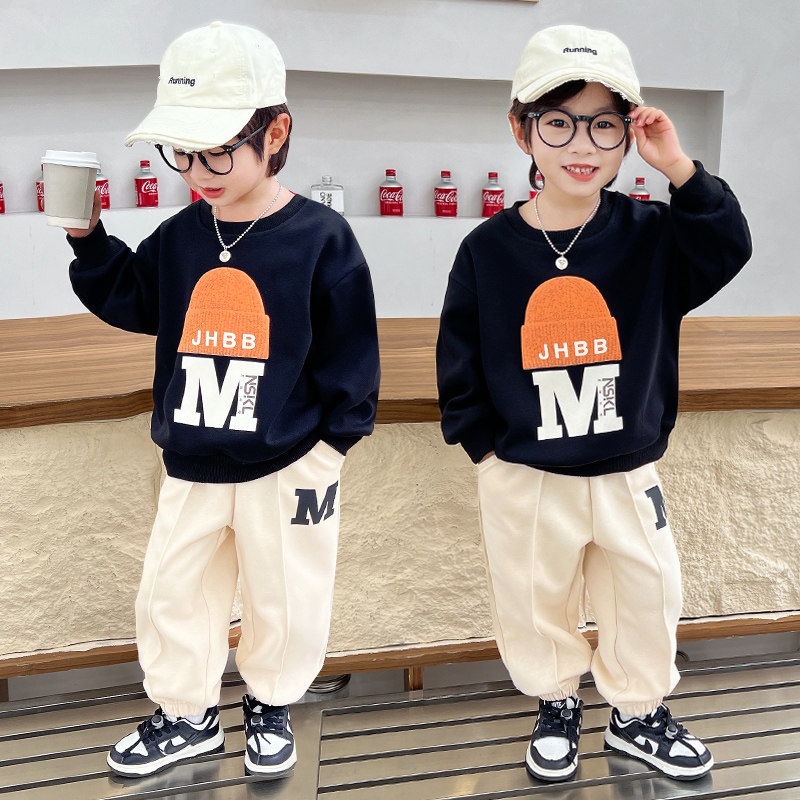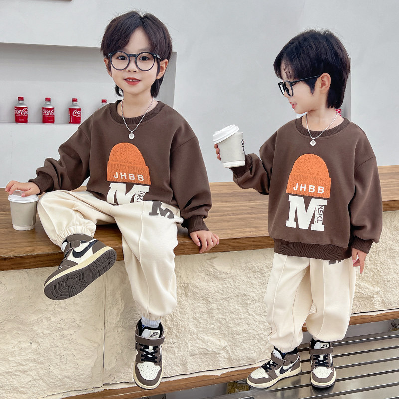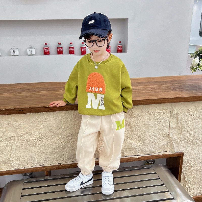 Male Treasure Fall Suit Ruffin Handsome Men's Young Boy Clothes Korean Version Sweatpants Two Sets Boys Early Autumn Sports Clothes Cool-Taobao