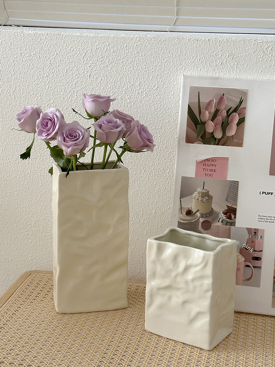 Vase Pendulum pieces Living room Flower Arrangement Ceramics Advanced Sensation Flowers Dry Flowers White Rose Modern Minimalist Paper Bag Cream Wind-Taobao