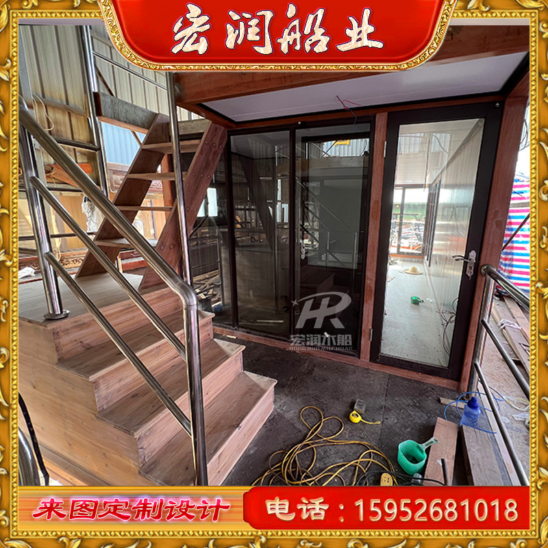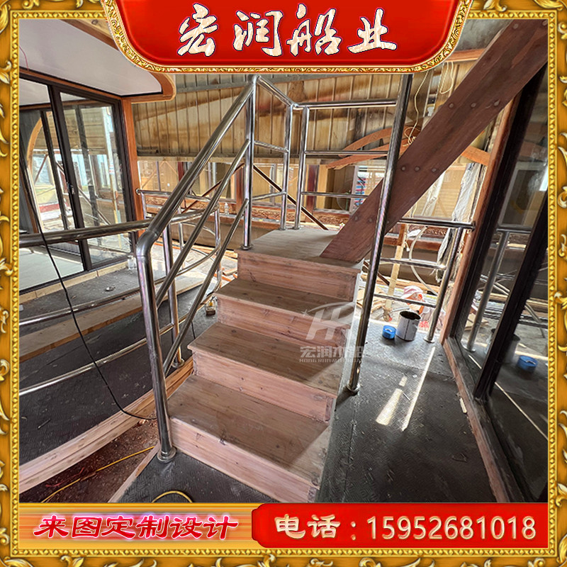 Wooden boat painting Dining Room Dining Room Dining Hall Water Accomodating Tourist Sightseeing Electric Multifunction Cruise Ship Imitation Ancient GRP-Taobao