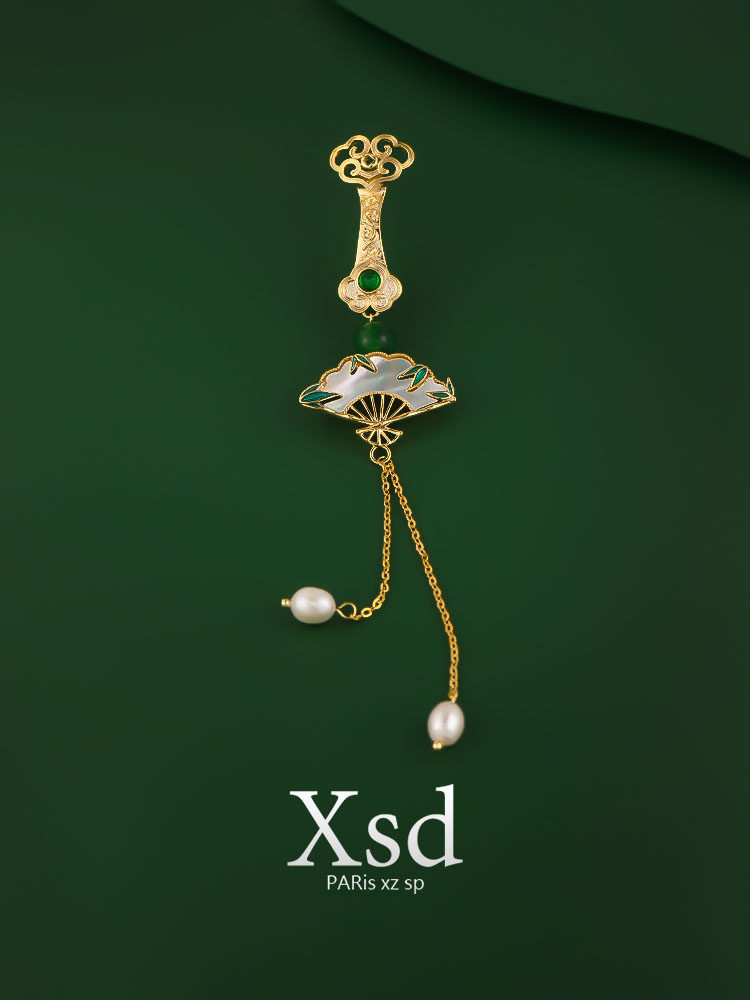 Pearl Bay Shell Fan Brooch Sternpin Qipao Press Cardio-style New Chinese Flow Su Ruyi Buckle Pendant Suit Hanfu Accessories-Taobao