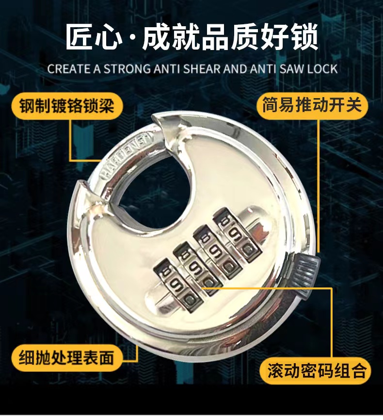 Stainless Steel Password Padlock Waterproof Rust-proof Round Padlock Warehouse Gate Lock Car Basket Stall Truck Door Anti-theft Padlock-Taobao