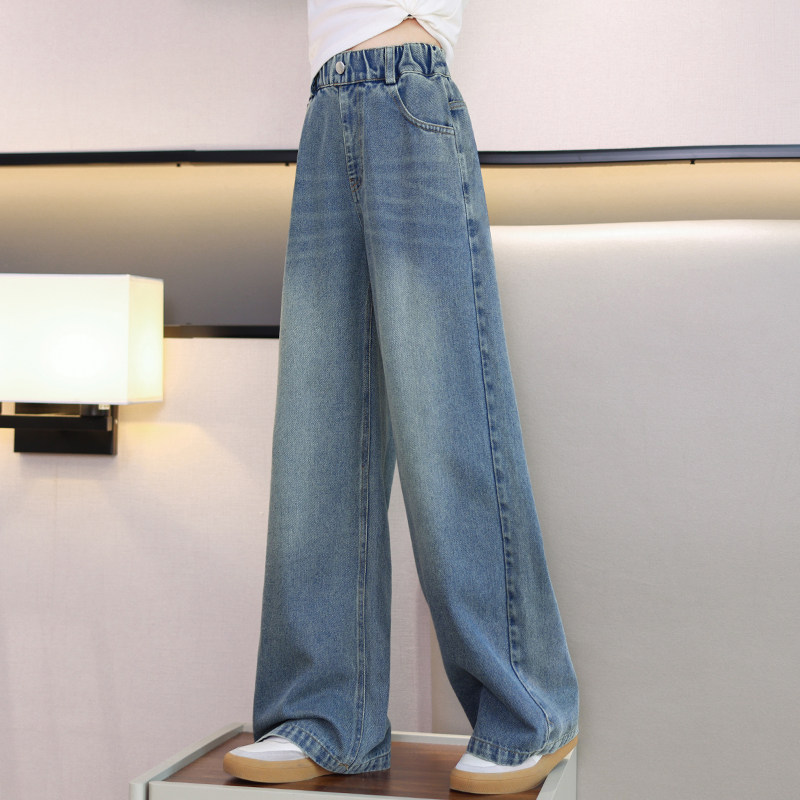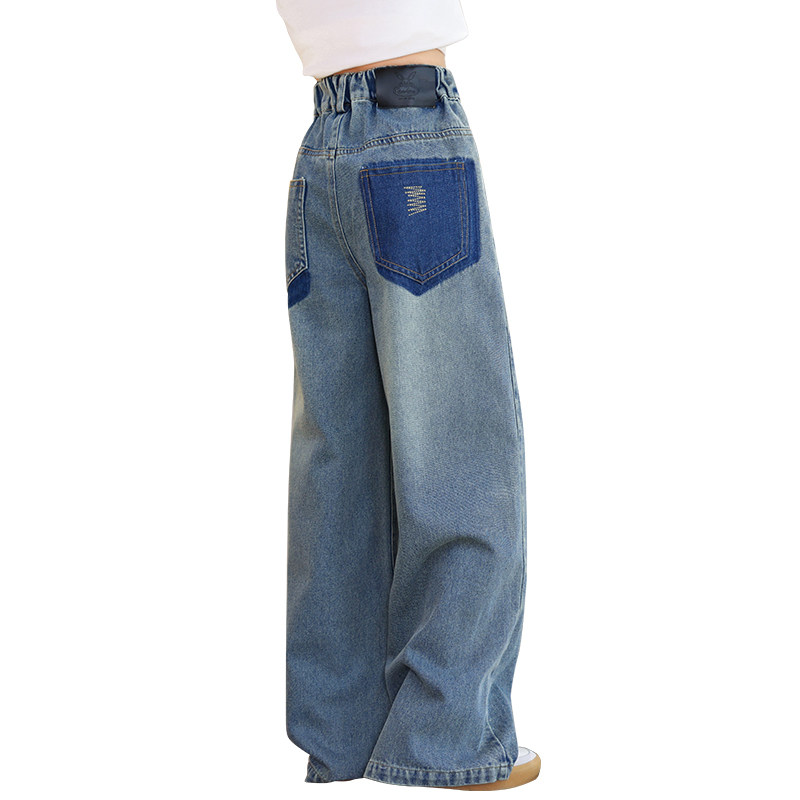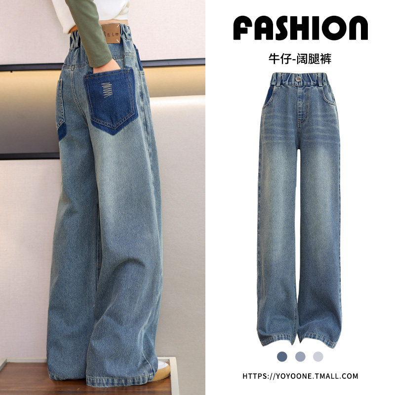 Girl Autumn Clothing Pants 2023 New Autumn Winter Jeans Spring Autumn Children Straight Cylinder Wide Leg Pants Loose Long Pants Plus Fleece-Taobao