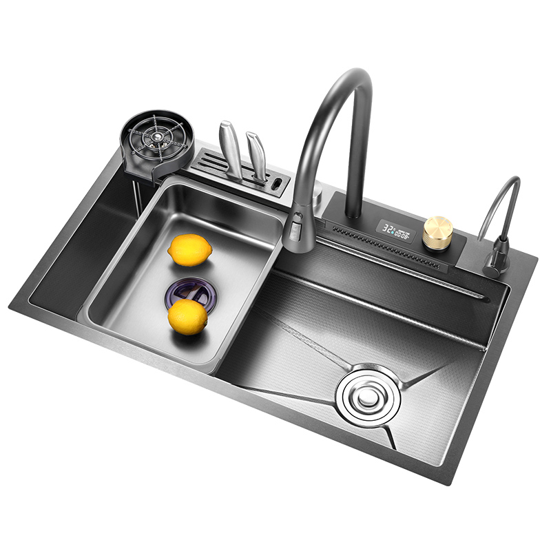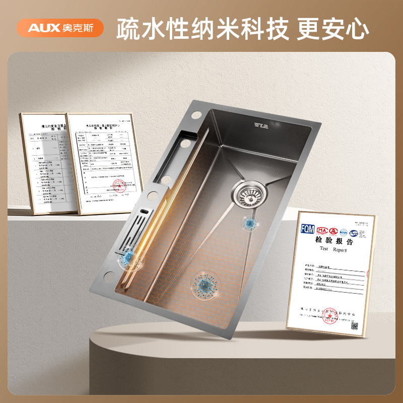 Ox Stainless Steel Wash Basin Kitchen Sink Waterfall Large Single Trough Home Pool Naughty Wash Bowl Groove Embossing 1710-Taobao