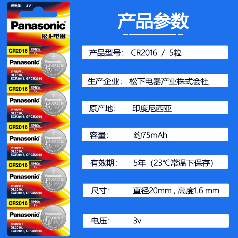 Panasonic CR2016 (5 grain) Panasonic CR2025 (5 grain) Panasonic CR2032 (5 grain)