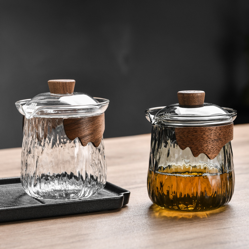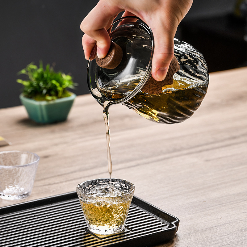 Glass Cover Bowl Not Hot Green Tea Tea Tea Fair Cup Tea Leak Cup Suit Large one person with hand grit with pot-Taobao