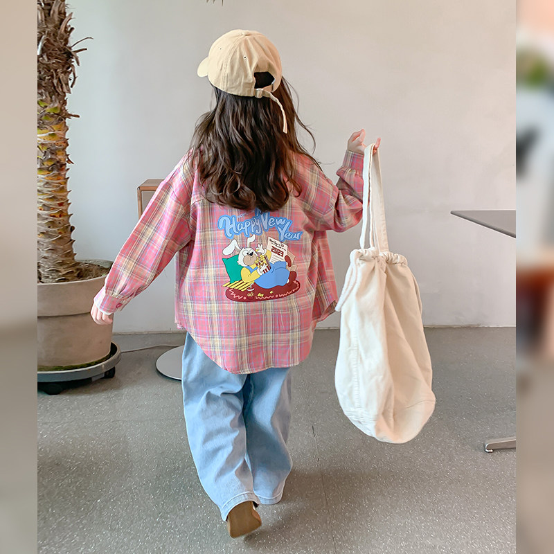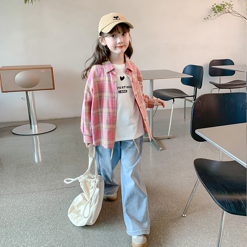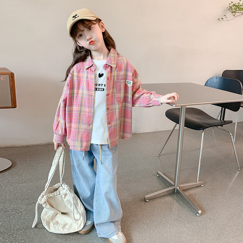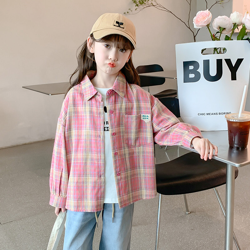 Girl Plaid Shirt Jacket Spring Autumn section 2023 new long sleeves shirt children thin autumn clothes little girl blouses-Taobao