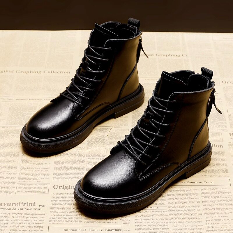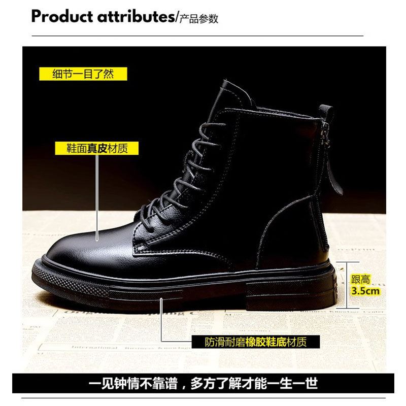 Martin boots female Inn Wind 100 lap Inn Wind rear zipper Spring autumn Single boot Winter Garvelte shoes genuine leather short boots women-Taobao