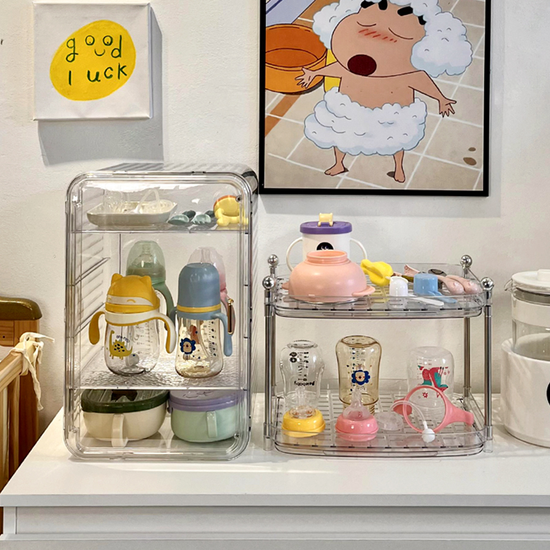 Transparent large number -3 layers of bottle containing box black tea brown large number -3 layers of bottle containing box transparent 3-layer storage cabinet double-shelf baby goods large household containing (3 layers of 4-layer composition) transparent large number -