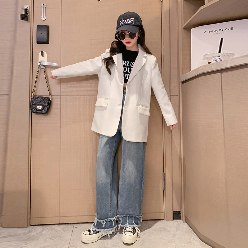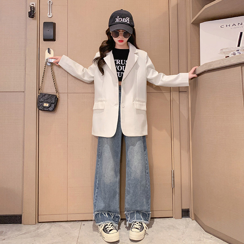 Girl Suits Jacket Spring Autumn 2023 New Children Foreign Air Fashion Blouses CUHK Boy Fall Trendy West Suit Tide-Taobao