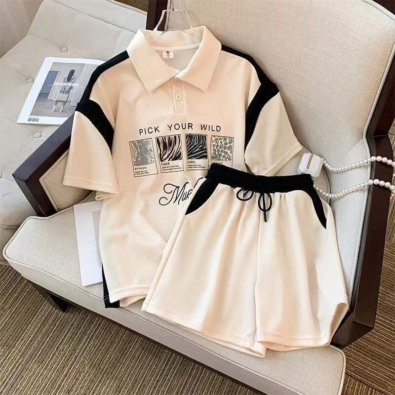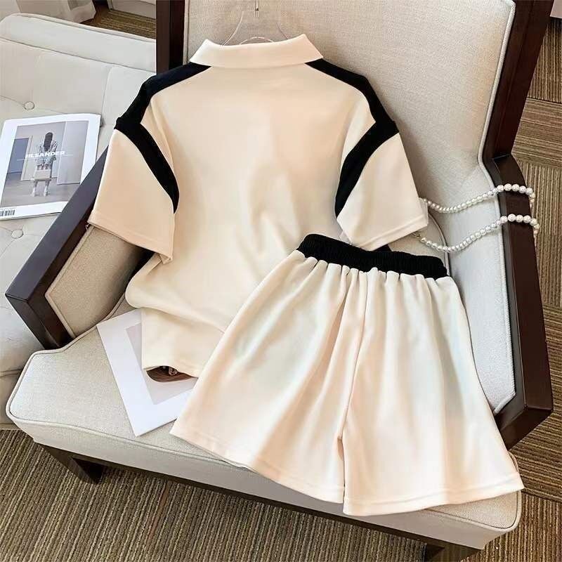 Girl suit Xia style 2023 new ocean gas polo turn collar blouses CUHK child splicing short sleeve shorts Two sets-Taobao